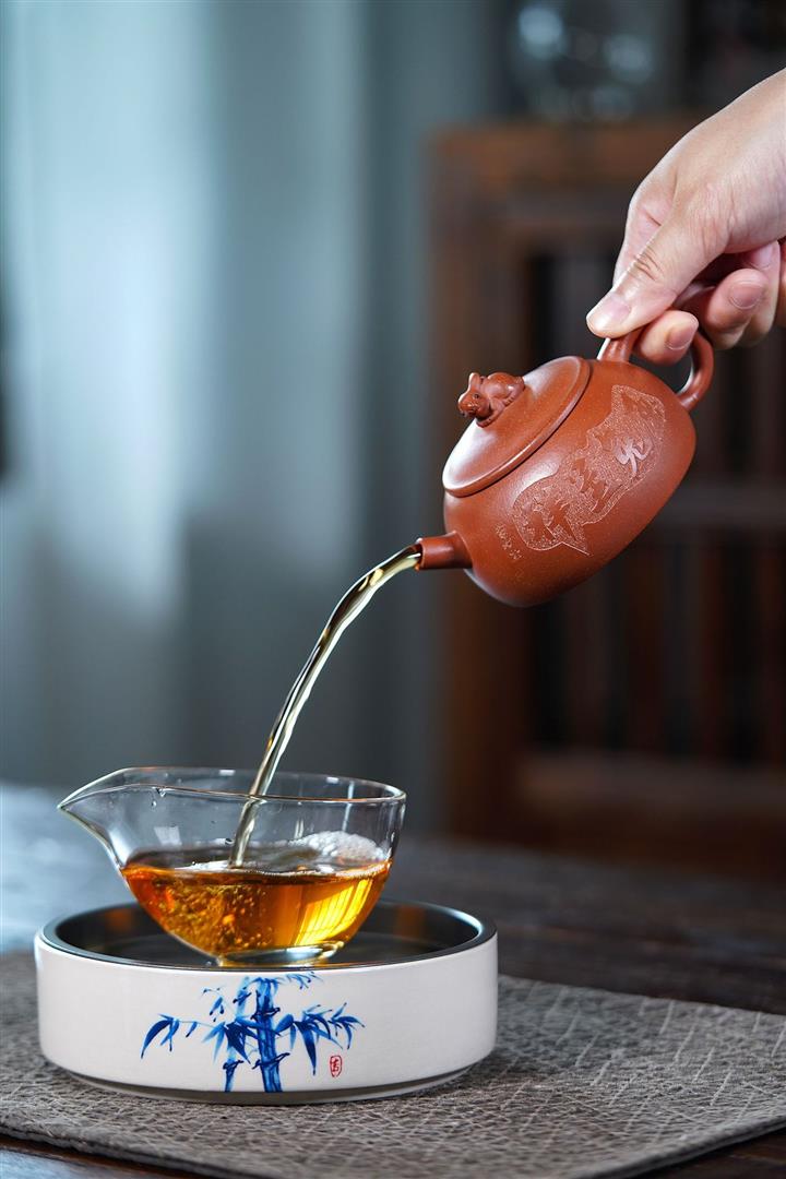 【泥料特點】砂土氣重,似淳實農民,日久使用,漸露鋒芒,養成變化,溫潤莊重。紫砂是壹種雙重氣孔結構的多孔性材質,氣孔微細,密度高。用紫砂壺沏茶,不失原味,且香不渙散,得茶之真香真味。紫砂使用越久,壺身色澤越發光亮照人,氣韻溫雅。紫砂壺長久使用器身會因撫摸擦拭,變得越發溫潤光澤。