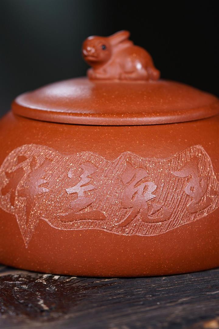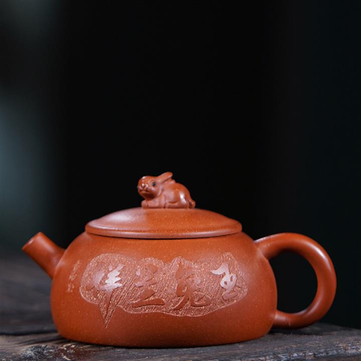 210cc原礦降坡泥玉兔呈祥半月茶壺POT8943