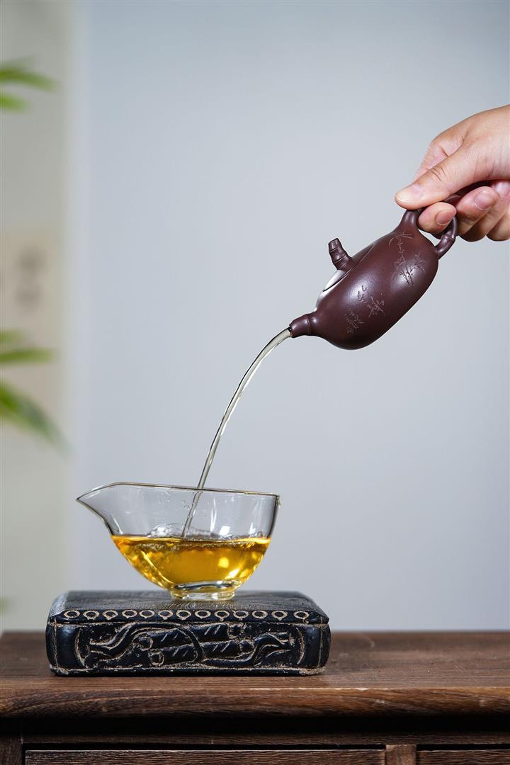 【泥料特點】砂土氣重,似淳實農民,日久使用,漸露鋒芒,養成變化,溫潤莊重。紫砂是壹種雙重氣孔結構的多孔性材質,氣孔微細,密度高。用紫砂壺沏茶,不失原味,且香不渙散,得茶之真香真味。紫砂使用越久,壺身色澤越發光亮照人,氣韻溫雅。紫砂壺長久使用器身會因撫摸擦拭,變得越發溫潤光澤。