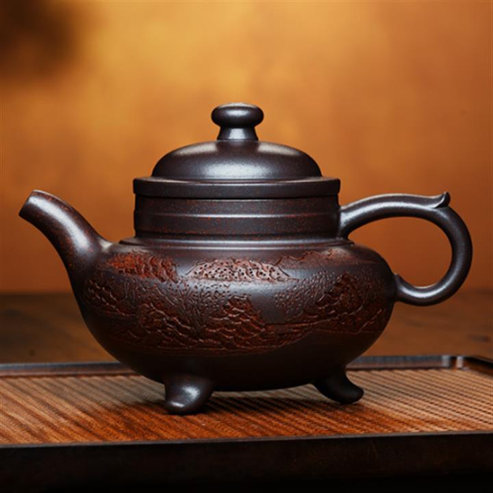 200cc原礦紫泥刻繪周盤茶壺POT8958