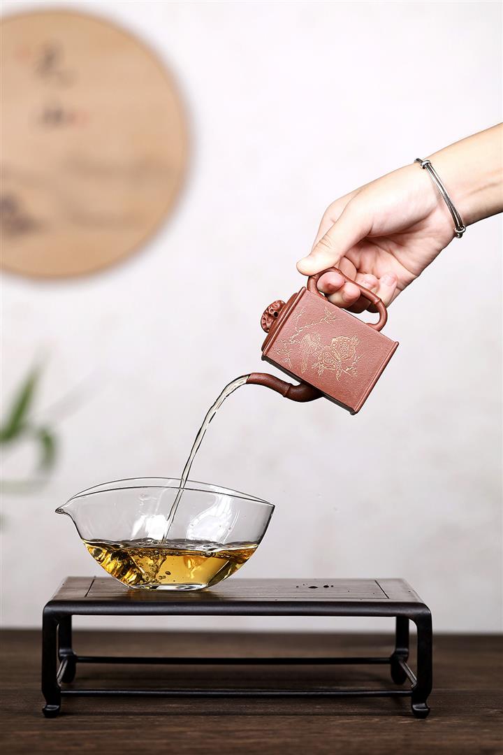 【泥料特點】砂土氣重,似淳實農民,日久使用,漸露鋒芒,養成變化,溫潤莊重。紫砂是壹種雙重氣孔結構的多孔性材質,氣孔微細,密度高。用紫砂壺沏茶,不失原味,且香不渙散,得茶之真香真味。紫砂使用越久,壺身色澤越發光亮照人,氣韻溫雅。紫砂壺長久使用器身會因撫摸擦拭,變得越發溫潤光澤。