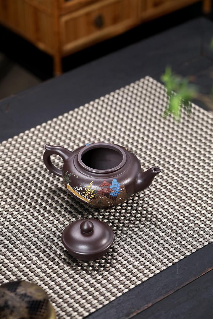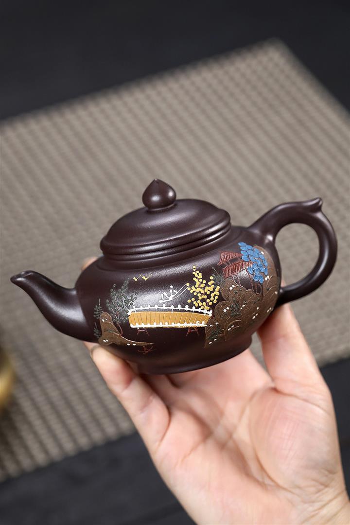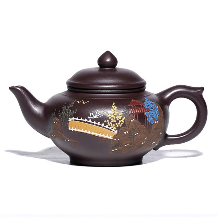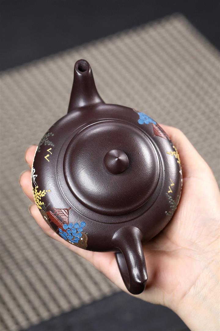 200cc原礦紫朱泥泥繪笑櫻茶壺POT8963