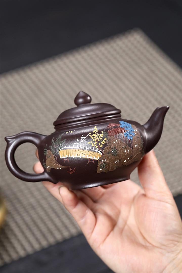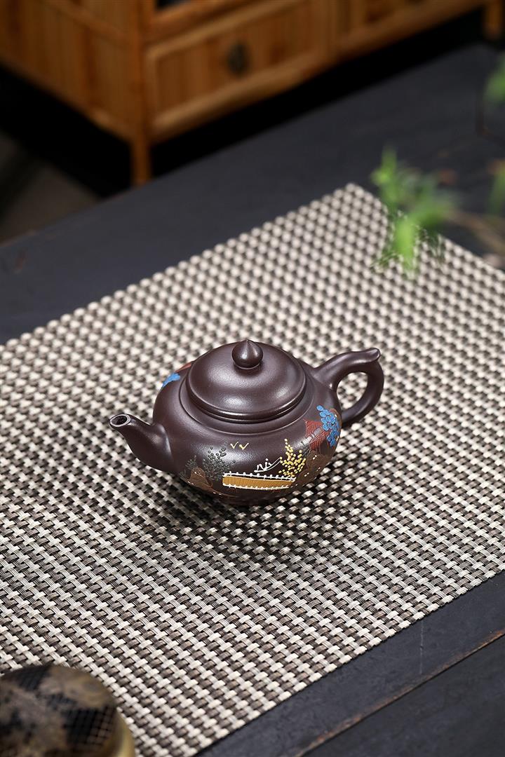 【作品介紹】此款壺形線條流暢,壺把,壺嘴,壺身壹氣呵成栩栩如生,是收藏把玩的好壺,泥料色澤古樸典雅,日久使用,漸露鋒芒,養成變化快,溫潤莊重,用其泡茶,使用的年代久,壺身就溫潤,泡出來的茶湯也就醇郁芳馨。