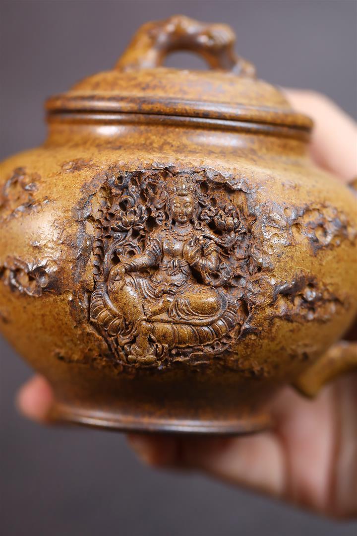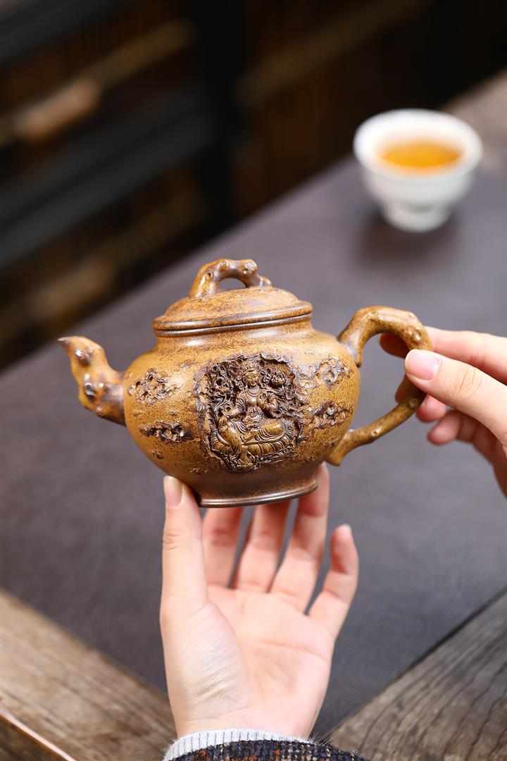 340cc原礦龍骨金砂報春-鏤空觀音茶壺POT8965