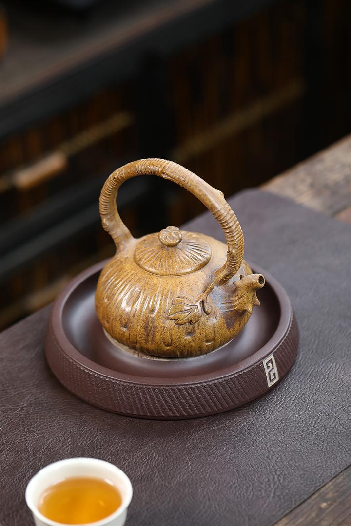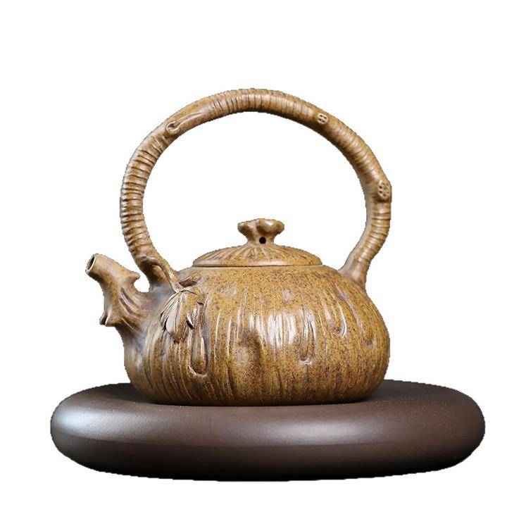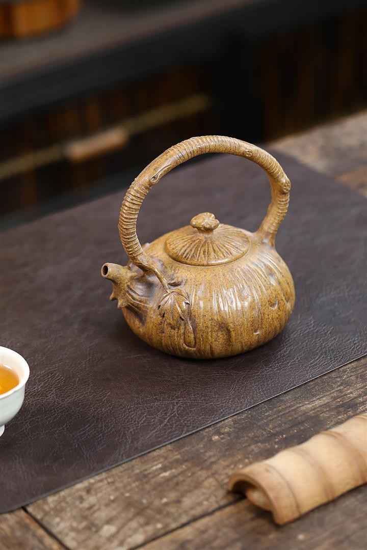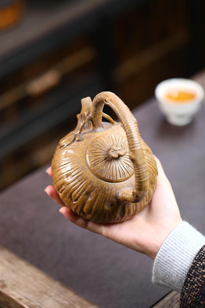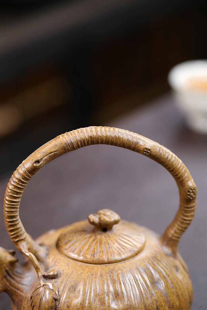 280cc原礦龍骨金砂蓮花提梁茶壺POT8970