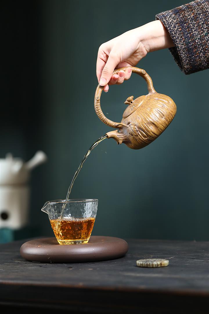 【泥料特點】砂土氣重,似淳實農民,日久使用,漸露鋒芒,養成變化,溫潤莊重。紫砂是壹種雙重氣孔結構的多孔性材質,氣孔微細,密度高。用紫砂壺沏茶,不失原味,且香不渙散,得茶之真香真味。紫砂使用越久,壺身色澤越發光亮照人,氣韻溫雅。紫砂壺長久使用器身會因撫摸擦拭,變得越發溫潤光澤。