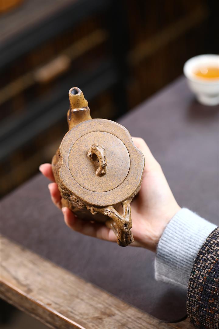 320cc原礦龍骨金砂竹節提梁茶壺POT8981