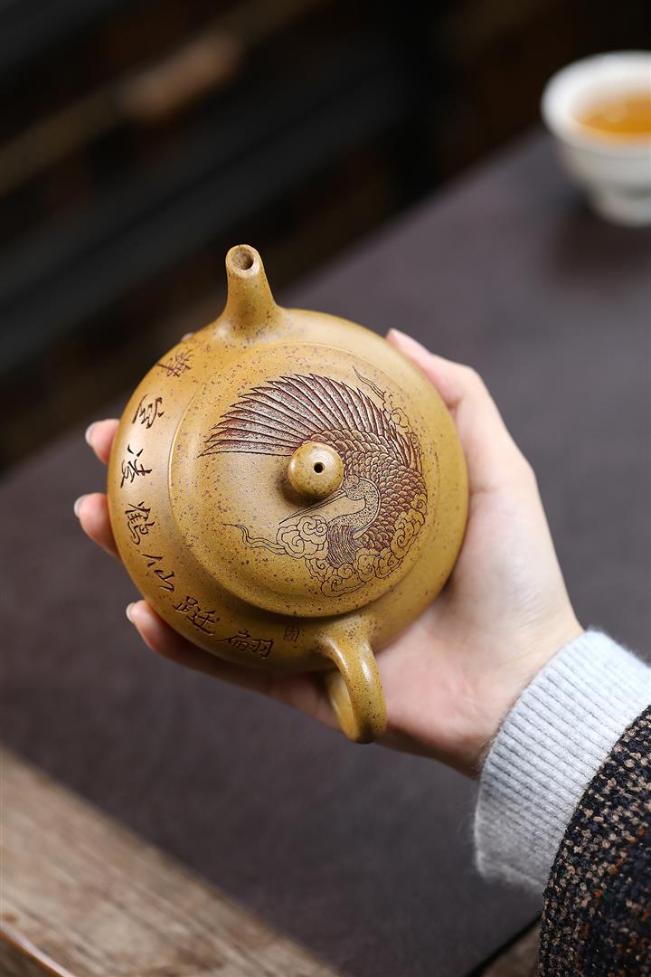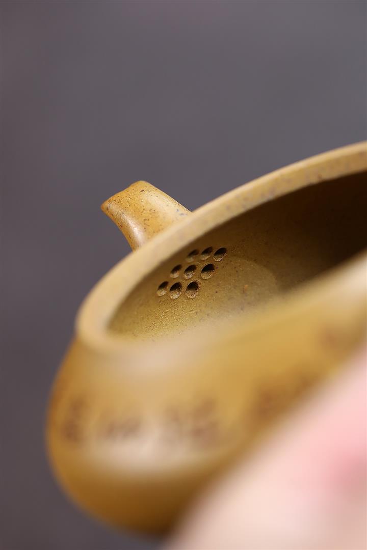 【作品介紹】此款壺形線條流暢,壺把,壺嘴,壺身壹氣呵成栩栩如生,是收藏把玩的好壺,泥料色澤古樸典雅,日久使用,漸露鋒芒,養成變化快,溫潤莊重,用其泡茶,使用的年代久,壺身就溫潤,泡出來的茶湯也就醇郁芳馨。