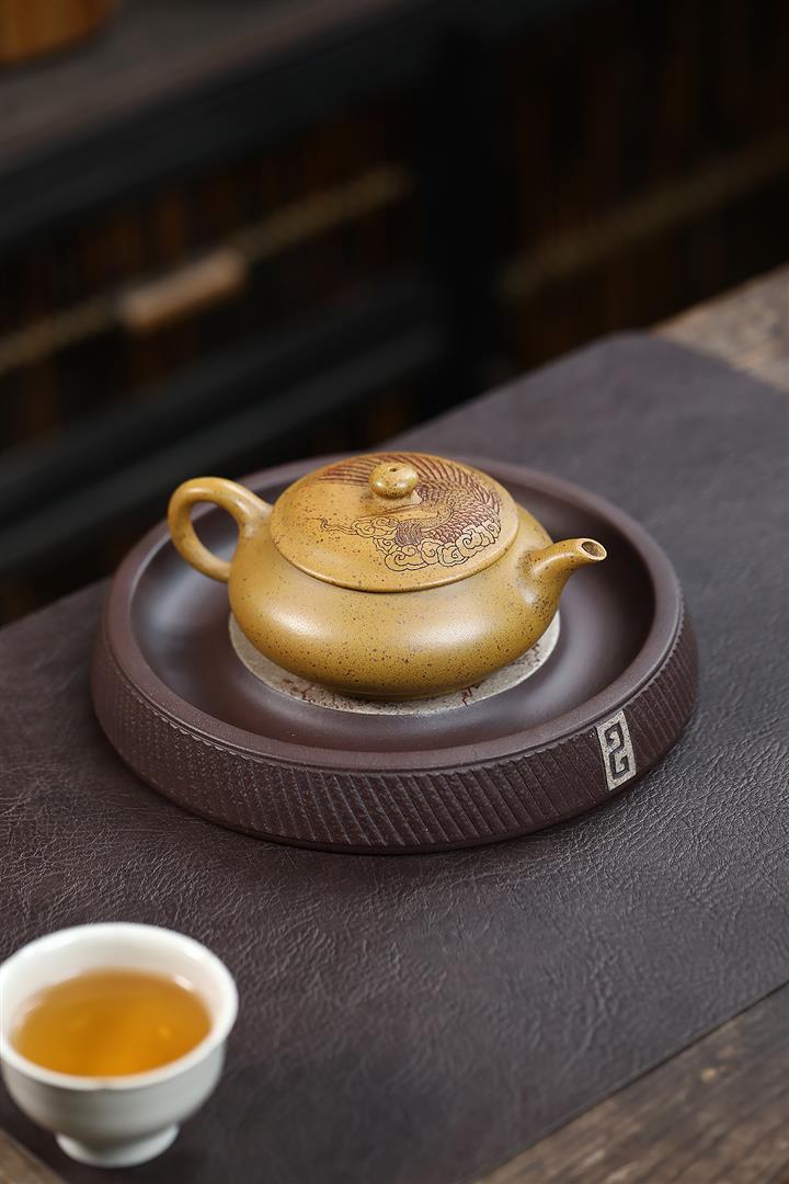 【泥料特點】砂土氣重,似淳實農民,日久使用,漸露鋒芒,養成變化,溫潤莊重。紫砂是壹種雙重氣孔結構的多孔性材質,氣孔微細,密度高。用紫砂壺沏茶,不失原味,且香不渙散,得茶之真香真味。紫砂使用越久,壺身色澤越發光亮照人,氣韻溫雅。紫砂壺長久使用器身會因撫摸擦拭,變得越發溫潤光澤。