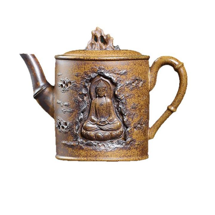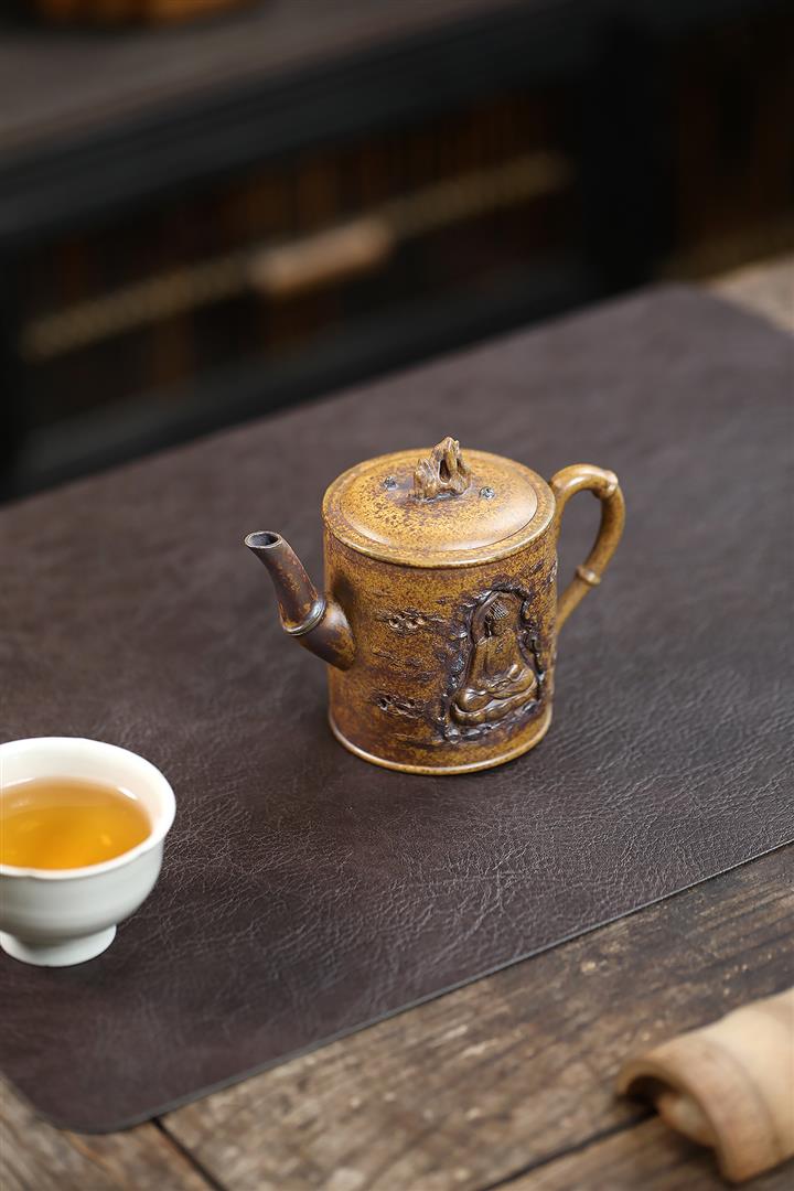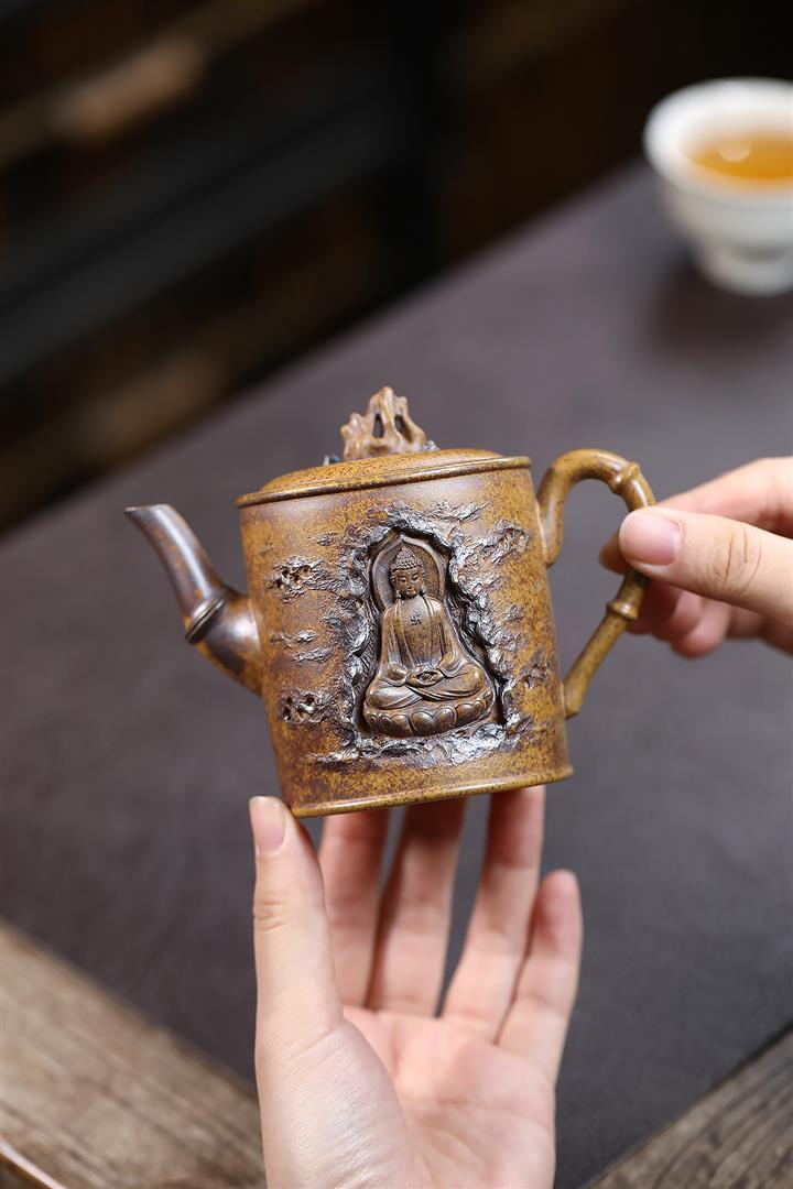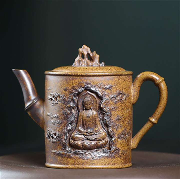 410cc原礦石黃泥彩刻蓬萊勝景茶壺POT8988