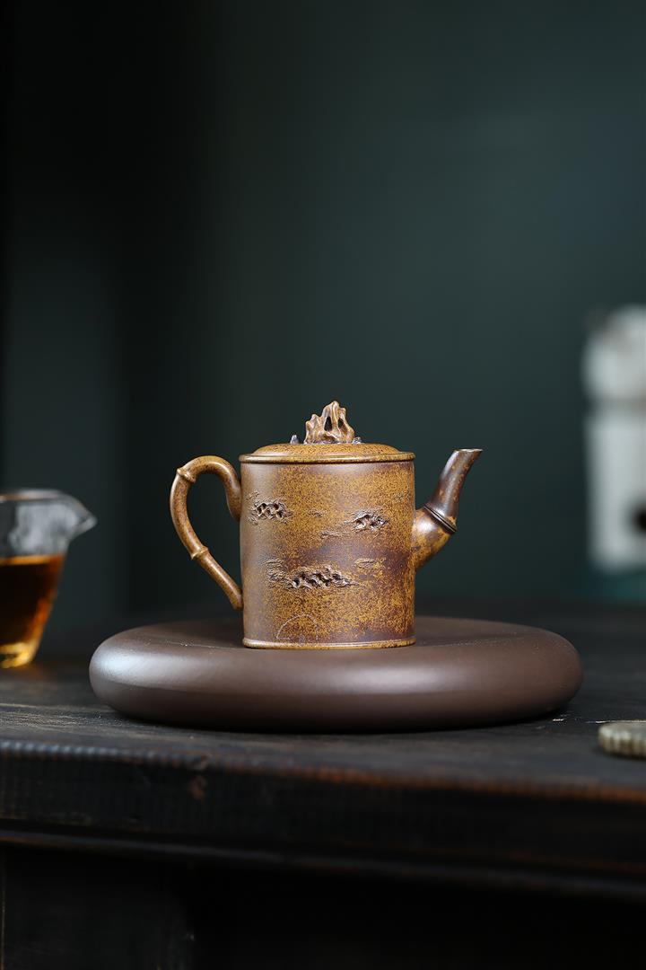 200cc原礦龍骨金砂祥雲竹節茶壺POT8978