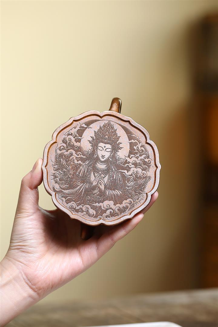 410cc原礦石黃泥彩刻蓬萊勝景茶壺POT8988