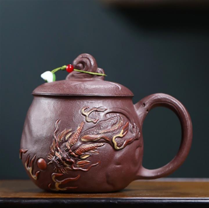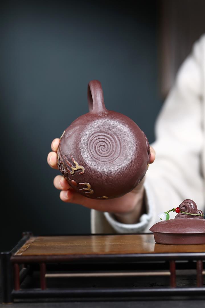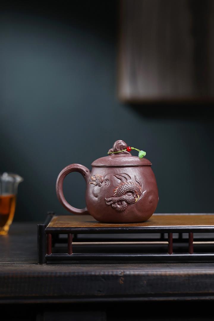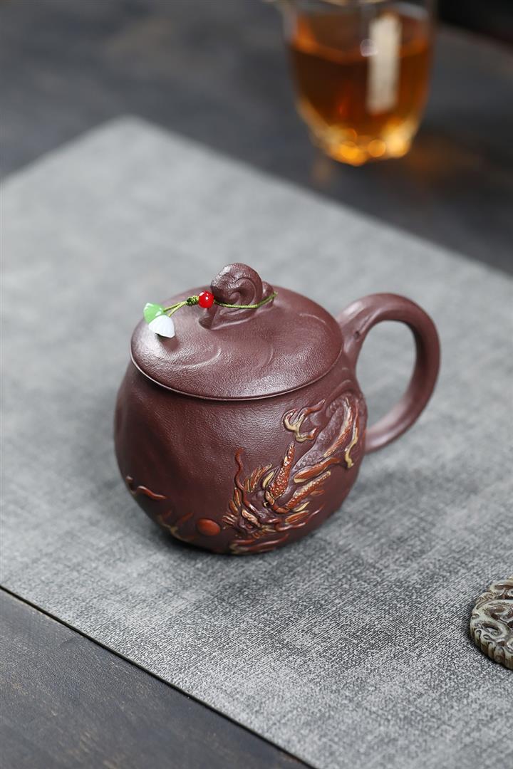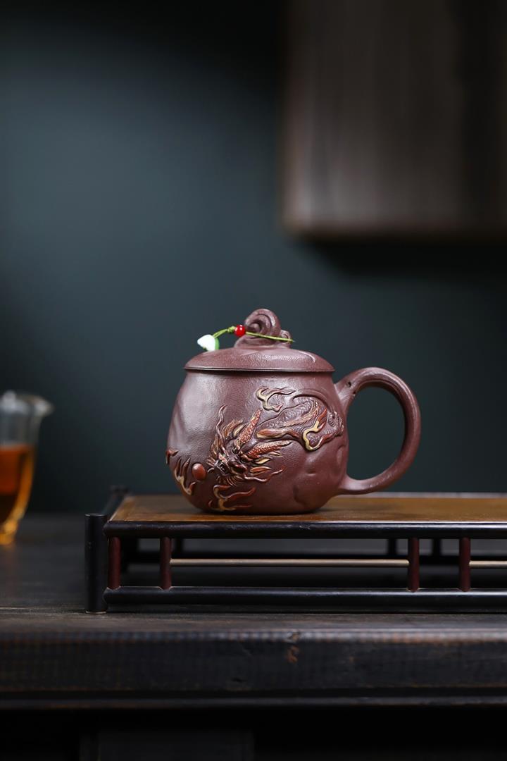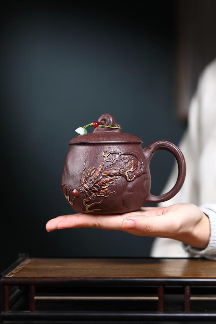 380cc原礦陳腐紫泥雲龍戲珠蓋杯POT8984