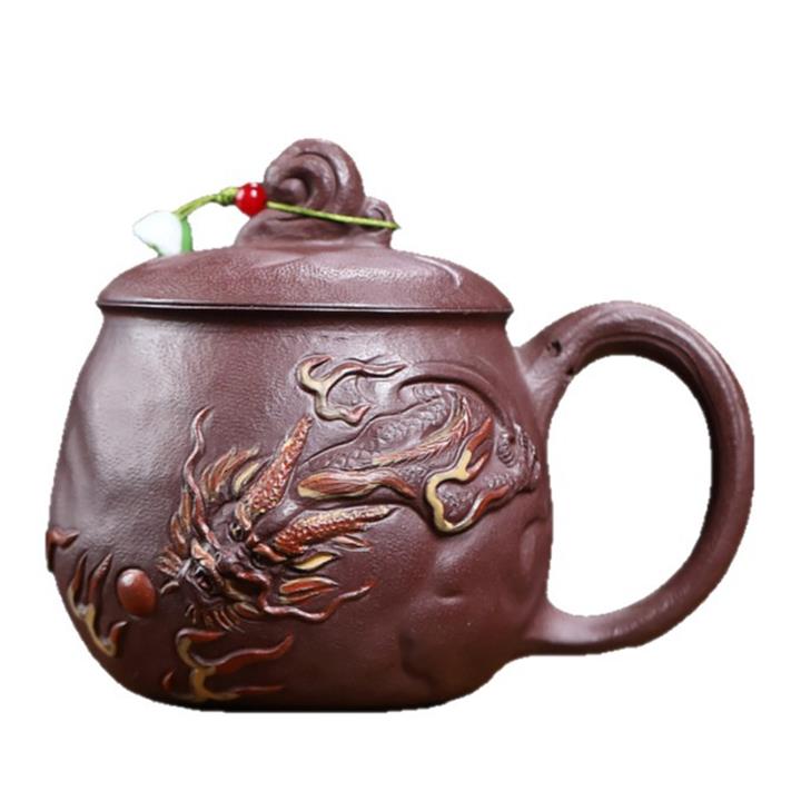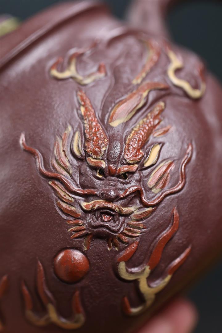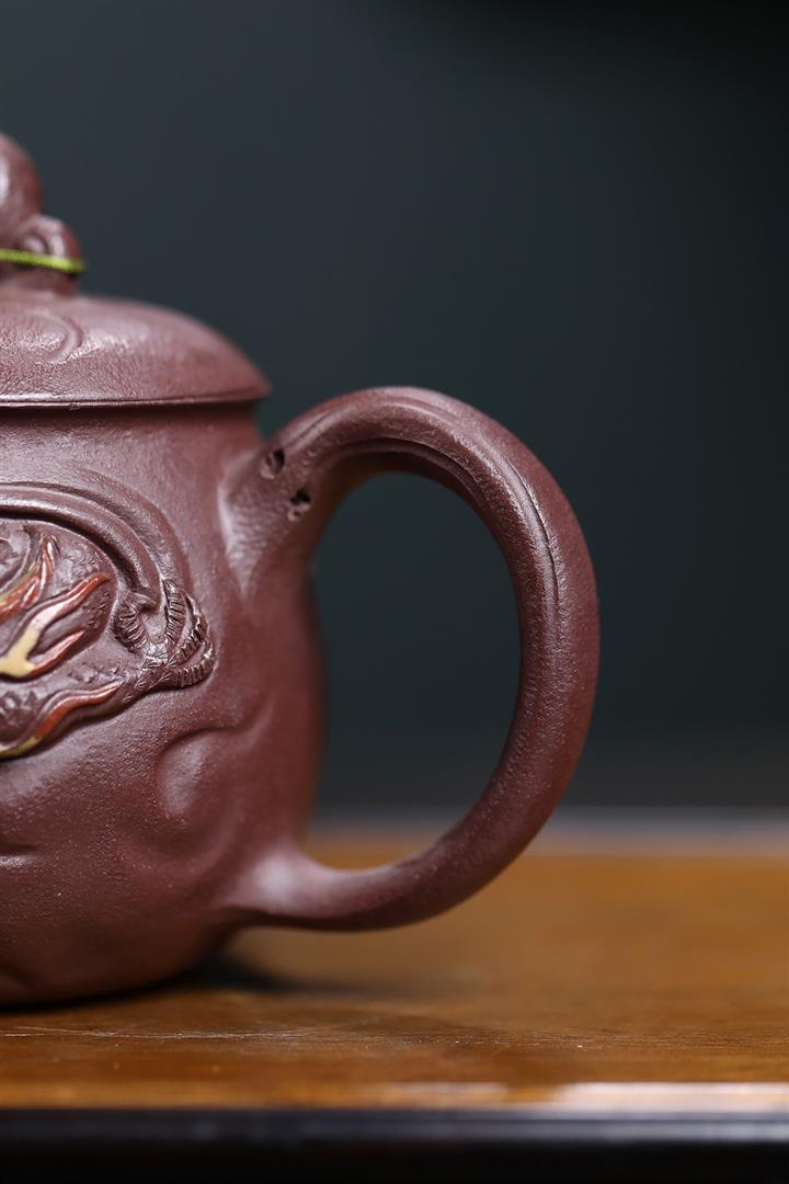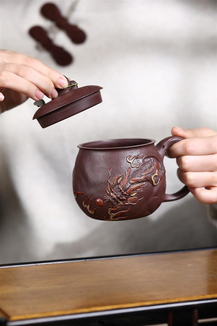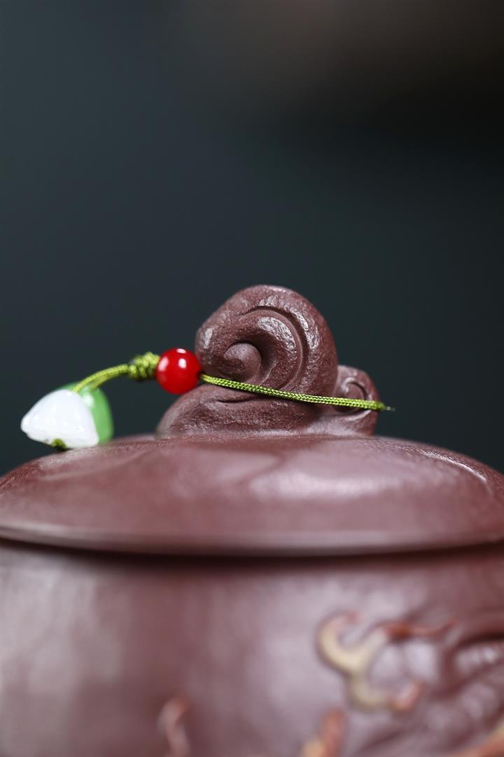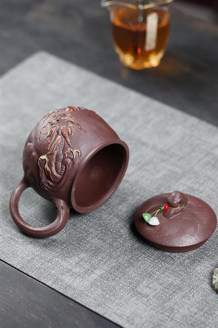 380cc原礦陳腐紫泥雲龍戲珠蓋杯POT8984