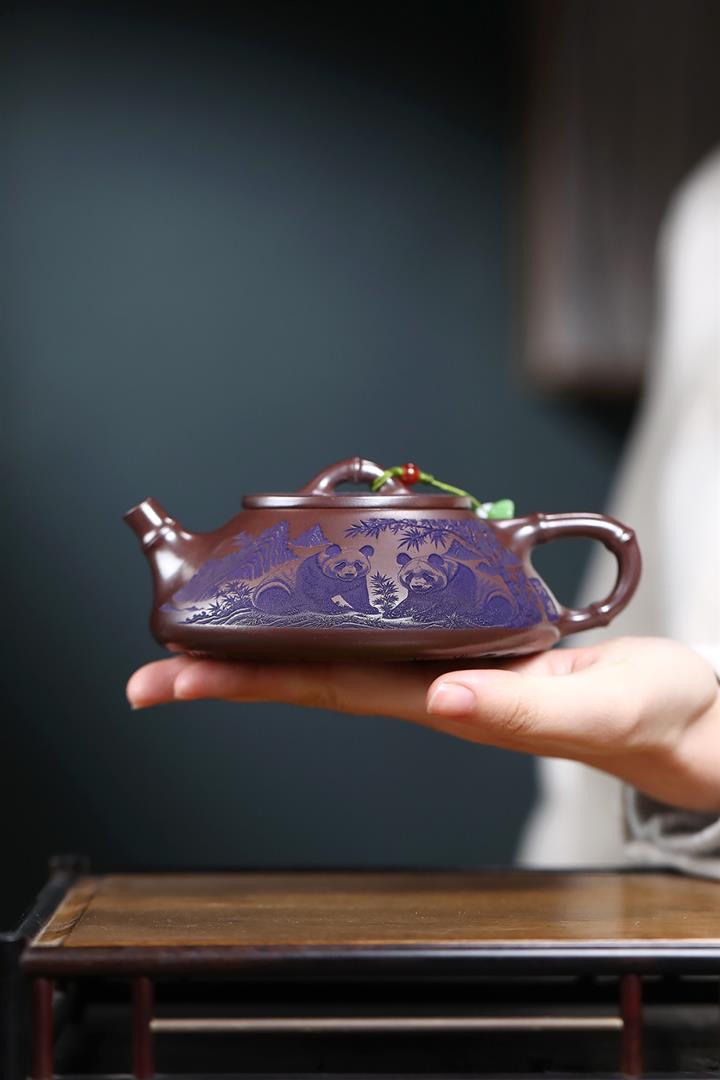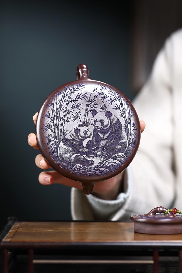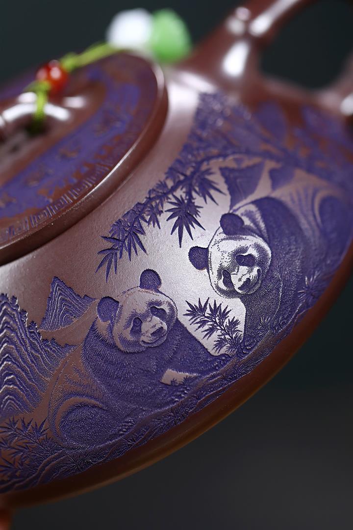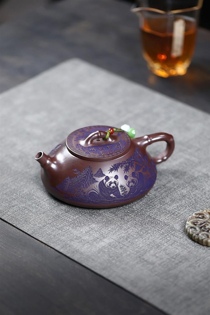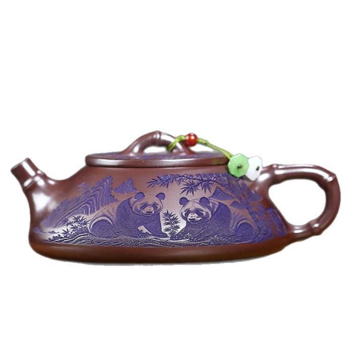 600cc原礦優質石黃泥滿刻熊貓西施茶壺POT9002