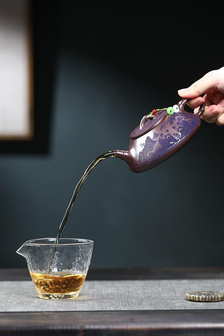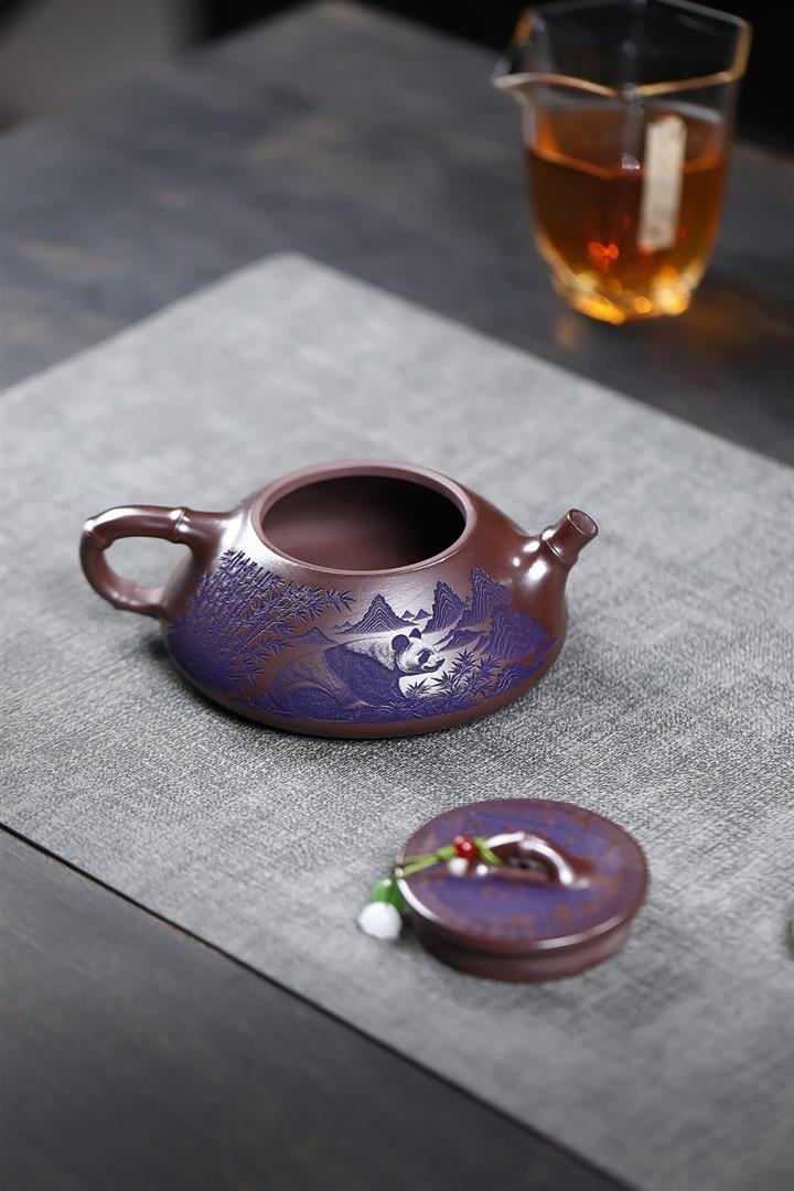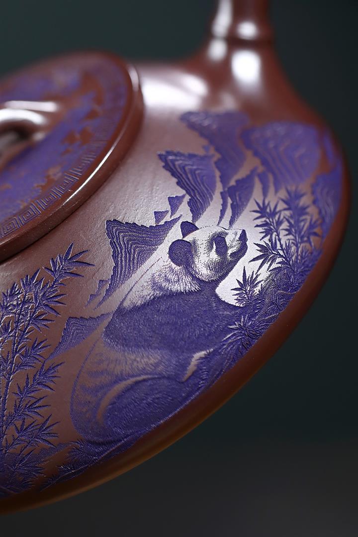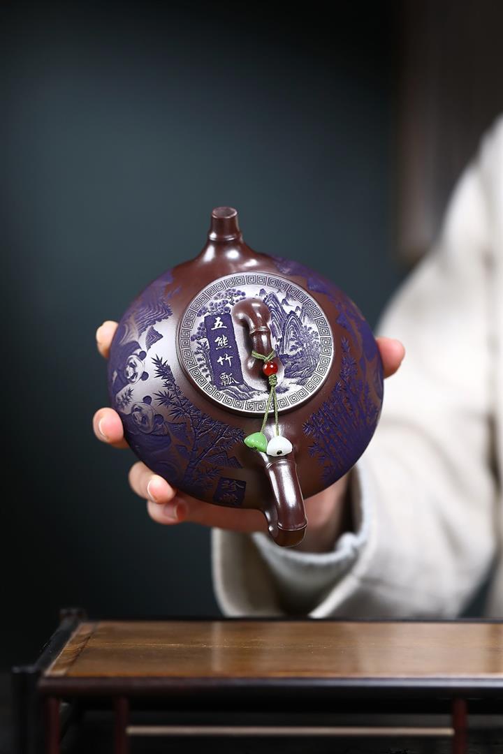 600cc原礦優質石黃泥滿刻熊貓西施茶壺POT9002