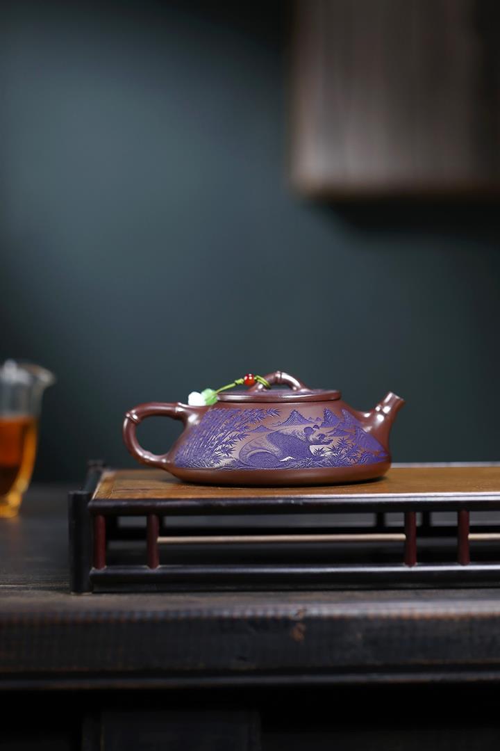 【泥料特點】砂土氣重,似淳實農民,日久使用,漸露鋒芒,養成變化,溫潤莊重。紫砂是壹種雙重氣孔結構的多孔性材質,氣孔微細,密度高。用紫砂壺沏茶,不失原味,且香不渙散,得茶之真香真味。紫砂使用越久,壺身色澤越發光亮照人,氣韻溫雅。紫砂壺長久使用器身會因撫摸擦拭,變得越發溫潤光澤。
