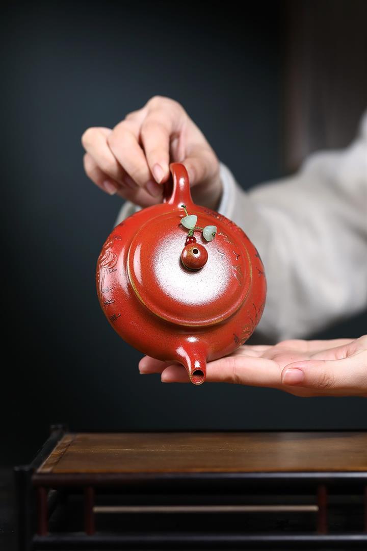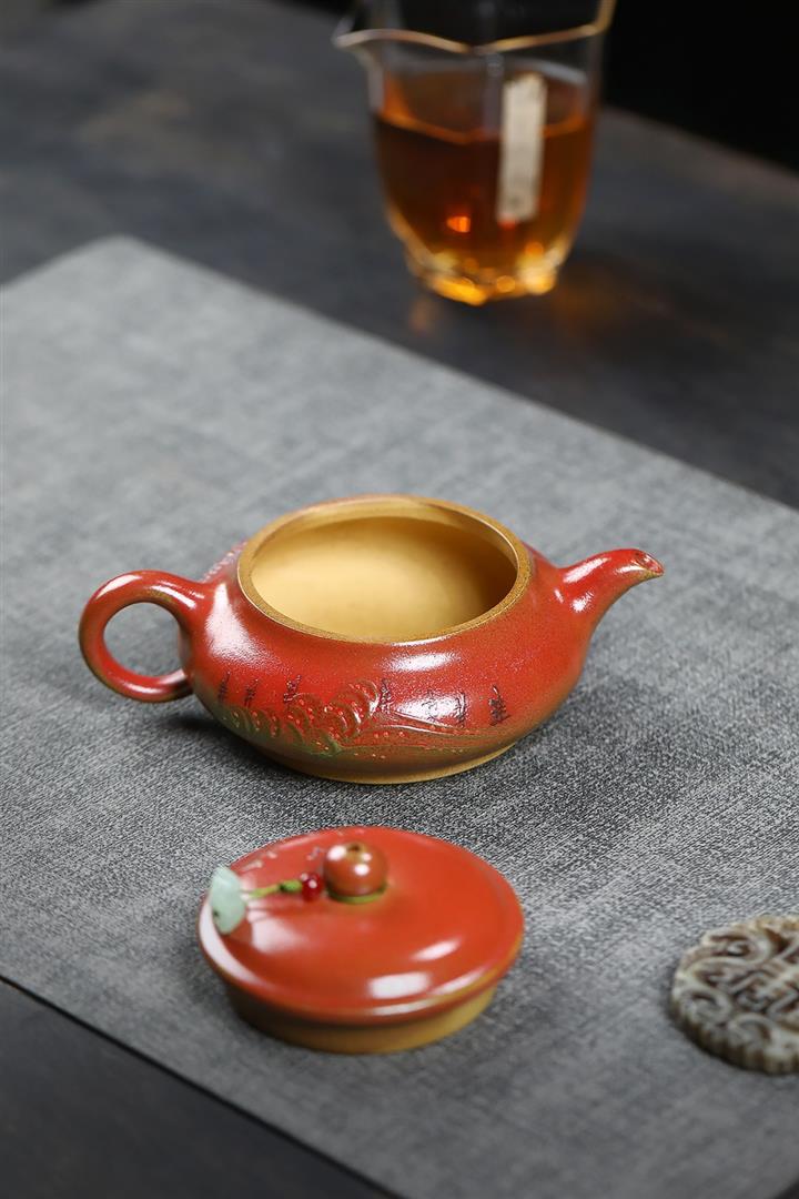650cc原礦石紅泥滿刻百子納福葫蘆POT9001