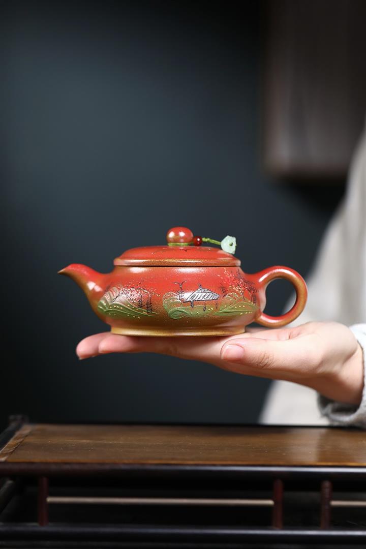 【作品介紹】此款壺形線條流暢,壺把,壺嘴,壺身壹氣呵成栩栩如生,是收藏把玩的好壺,泥料色澤古樸典雅,日久使用,漸露鋒芒,養成變化快,溫潤莊重,用其泡茶,使用的年代久,壺身就溫潤,泡出來的茶湯也就醇郁芳馨。