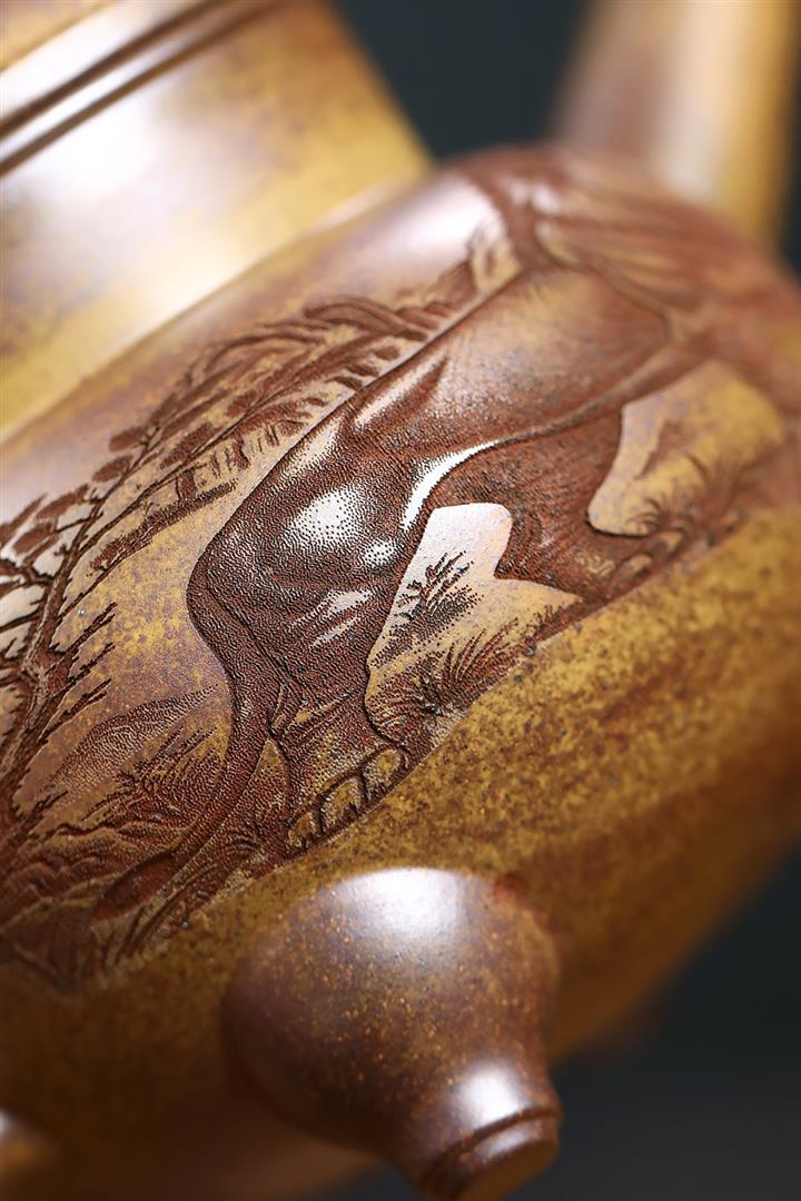 600cc原礦優質石黃泥滿刻熊貓西施茶壺POT9002