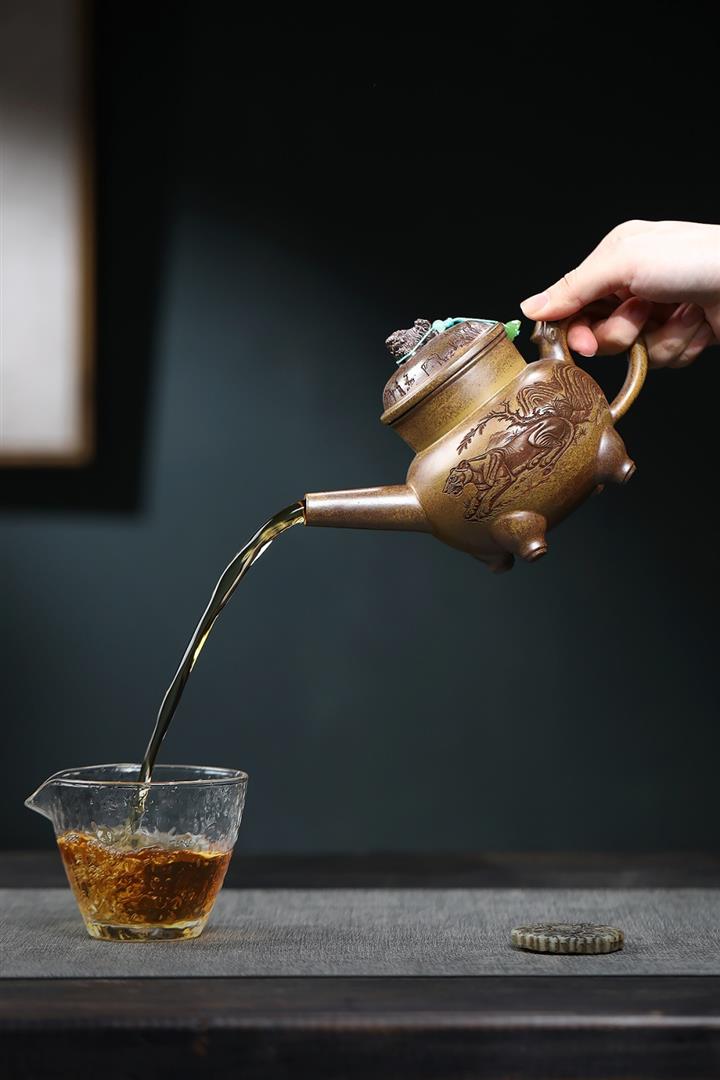 【作品介紹】此款壺形線條流暢,壺把,壺嘴,壺身壹氣呵成栩栩如生,是收藏把玩的好壺,泥料色澤古樸典雅,日久使用,漸露鋒芒,養成變化快,溫潤莊重,用其泡茶,使用的年代久,壺身就溫潤,泡出來的茶湯也就醇郁芳馨。