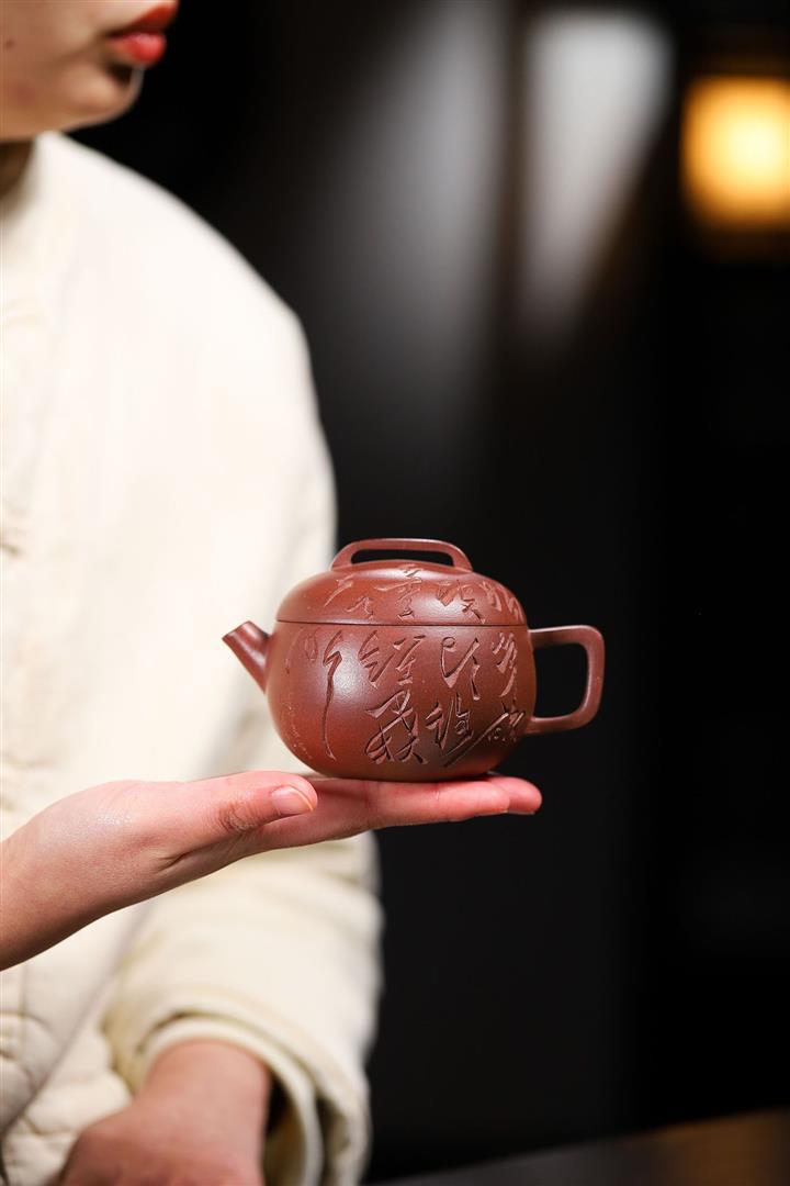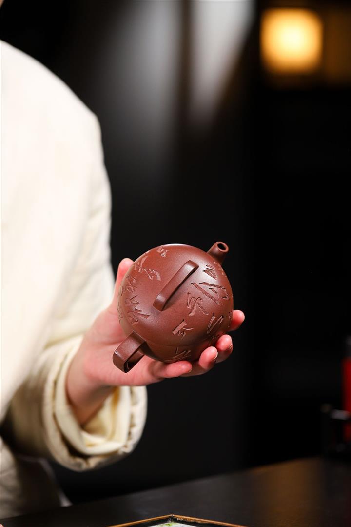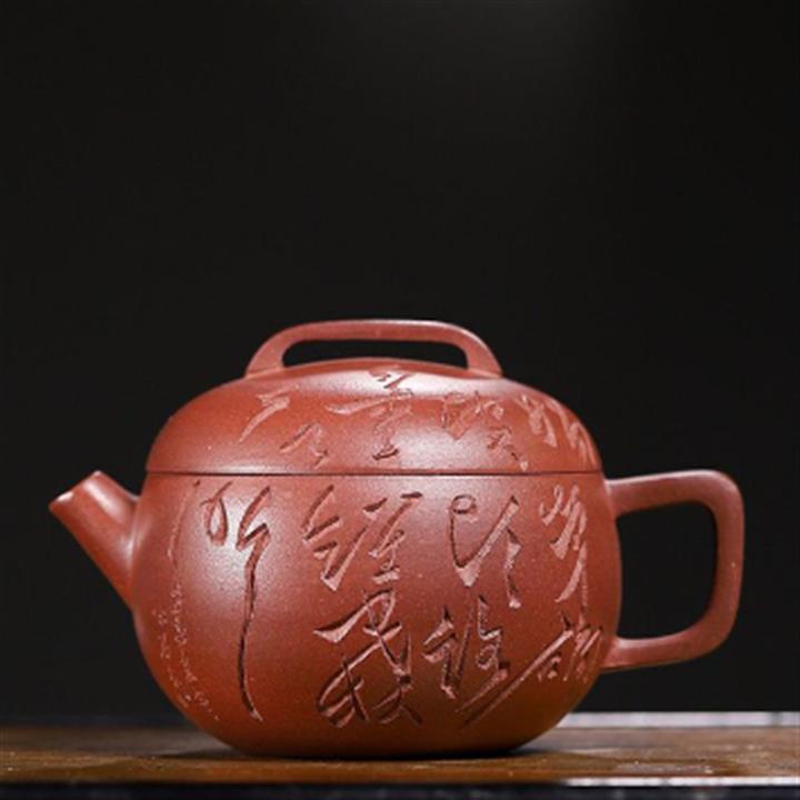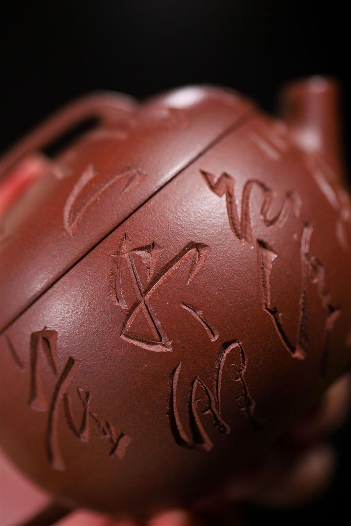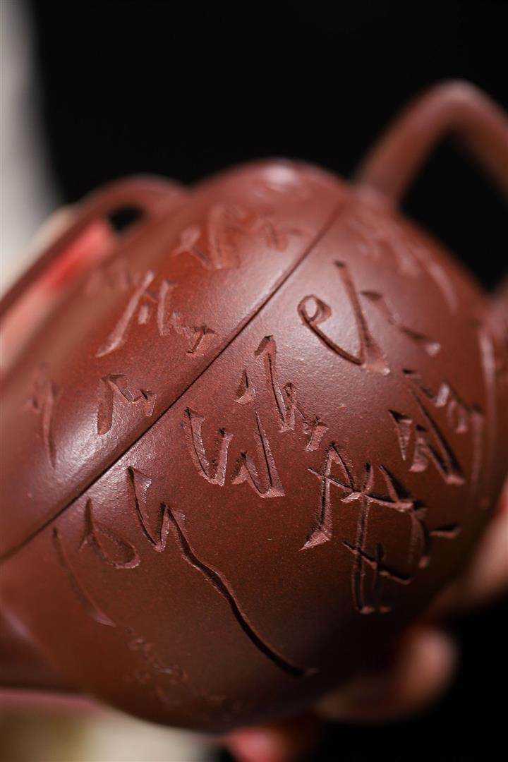 200cc原礦降坡泥柴燒刻字玉婉茶壺POT9012
