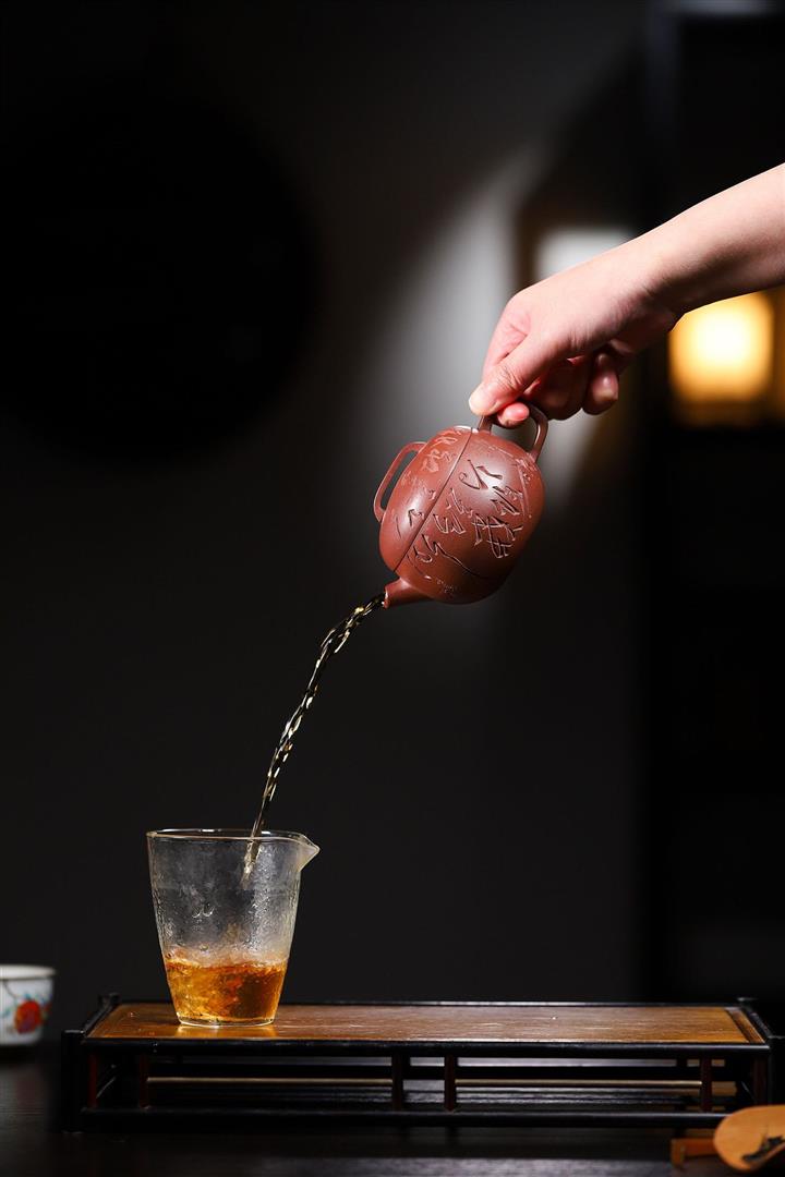 600cc原礦石紅泥松鶴延年秦權茶壺POT9020