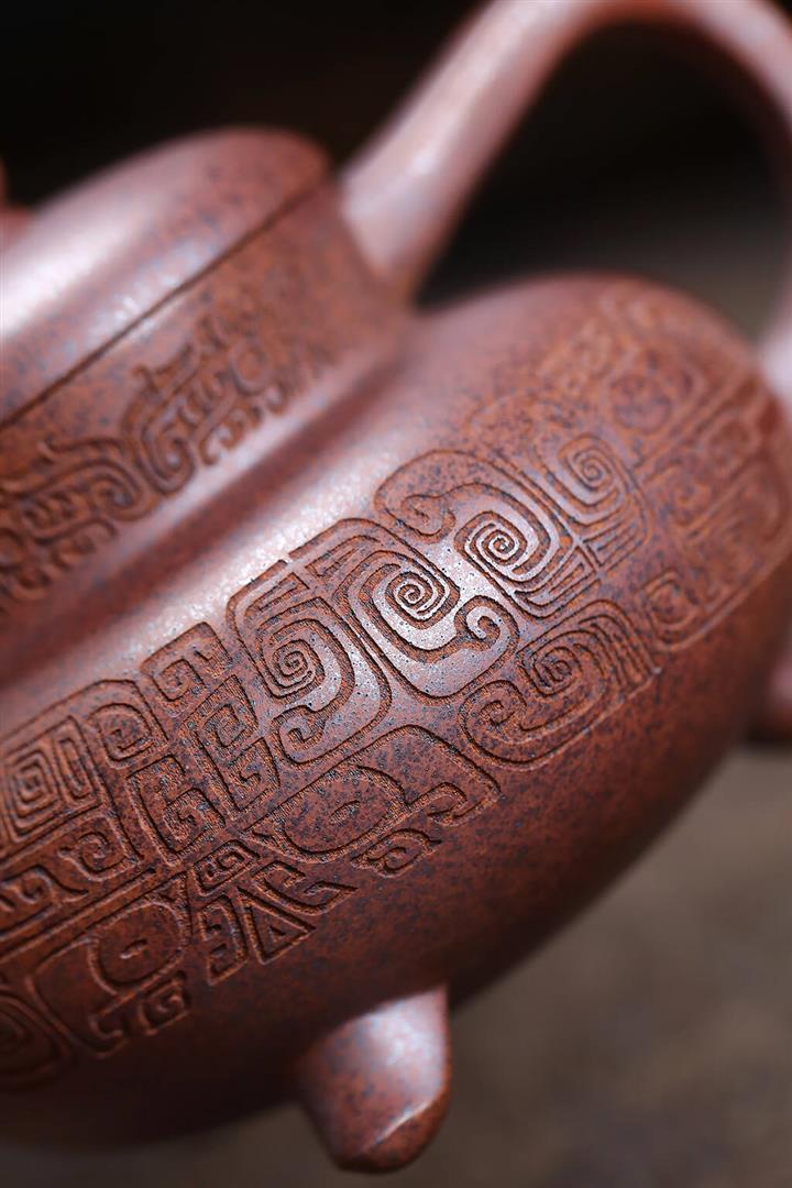 600cc原礦石紅泥松鶴延年秦權茶壺POT9020