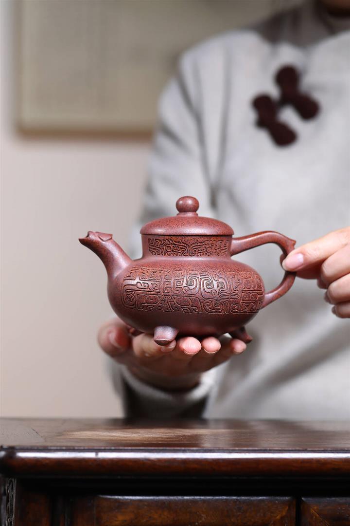 【作品介紹】此款壺形線條流暢,壺把,壺嘴,壺身壹氣呵成栩栩如生,是收藏把玩的好壺,泥料色澤古樸典雅,日久使用,漸露鋒芒,養成變化快,溫潤莊重,用其泡茶,使用的年代久,壺身就溫潤,泡出來的茶湯也就醇郁芳馨。