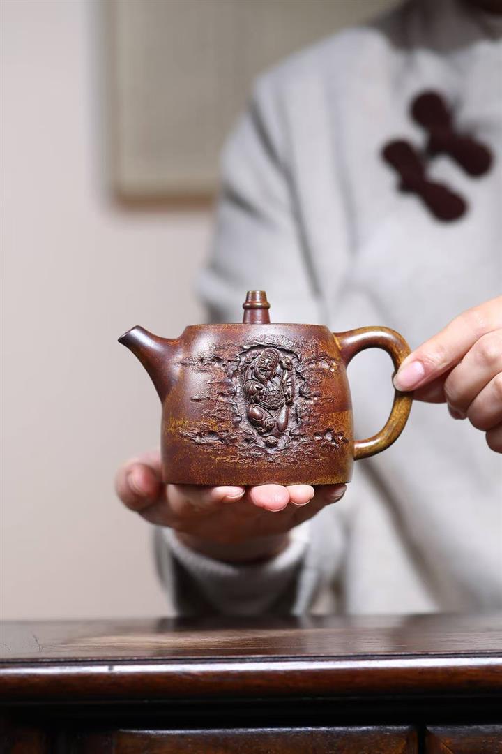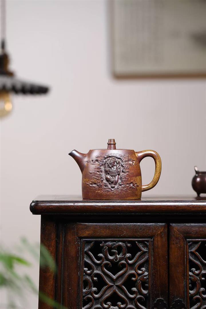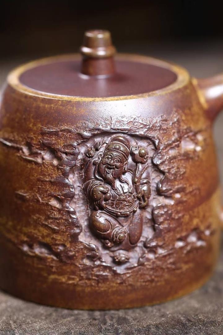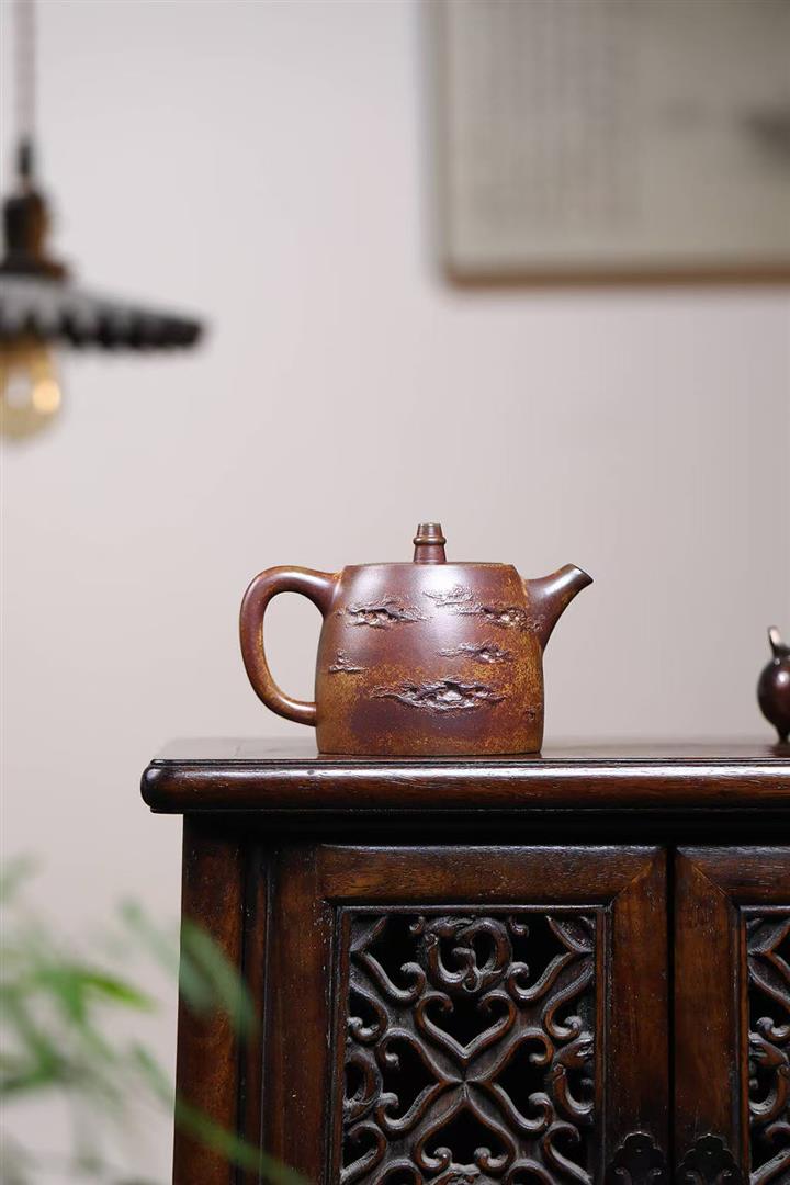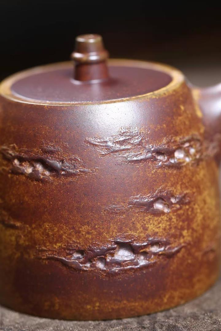 280cc原礦骨金砂柴燒洋桶提梁浮雕紋龍茶壺POT9033