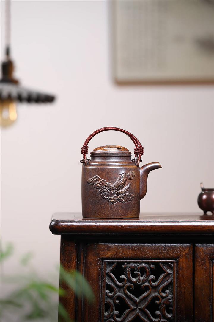 280cc原礦骨金砂柴燒洋桶提梁浮雕紋龍茶壺POT9033
