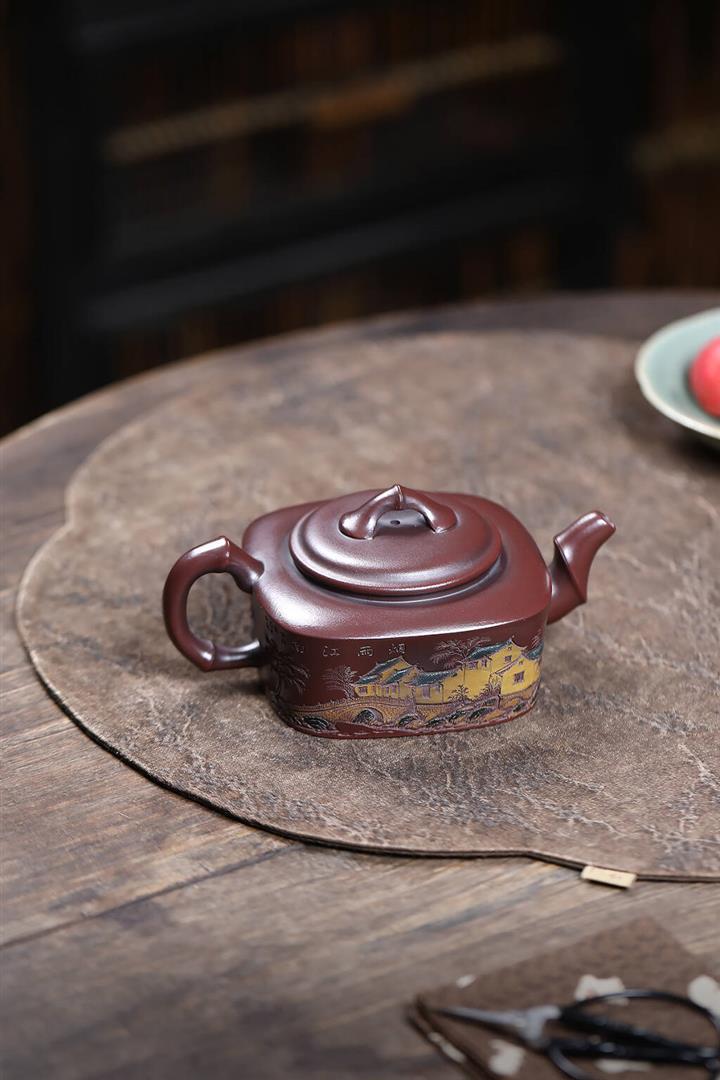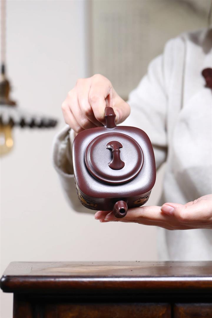 240cc龍山古烏泥山水四方竹段茶壺POT9036