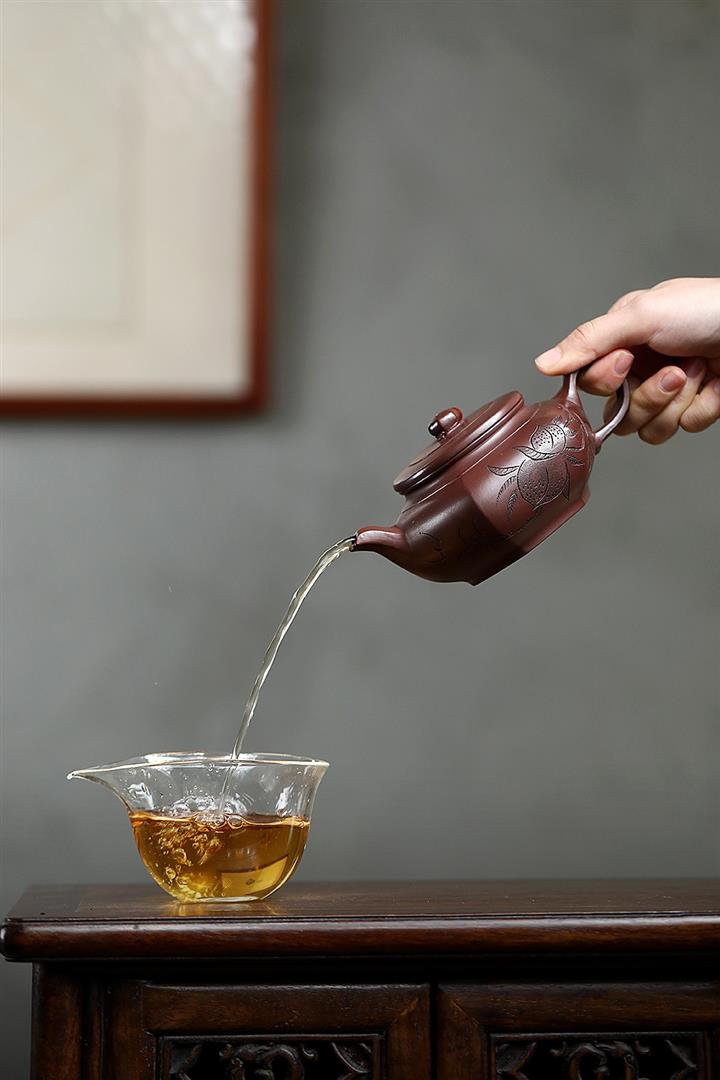 【作品介紹】此款壺形線條流暢,壺把,壺嘴,壺身壹氣呵成栩栩如生,是收藏把玩的好壺,泥料色澤古樸典雅,日久使用,漸露鋒芒,養成變化快,溫潤莊重,用其泡茶,使用的年代久,壺身就溫潤,泡出來的茶湯也就醇郁芳馨。