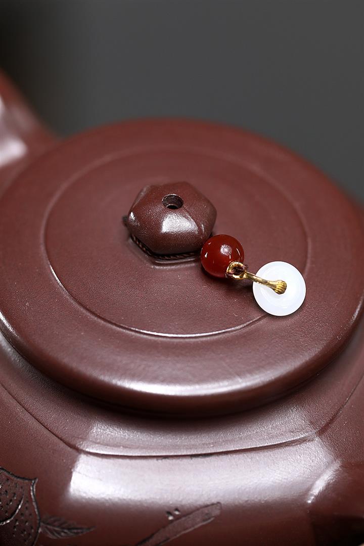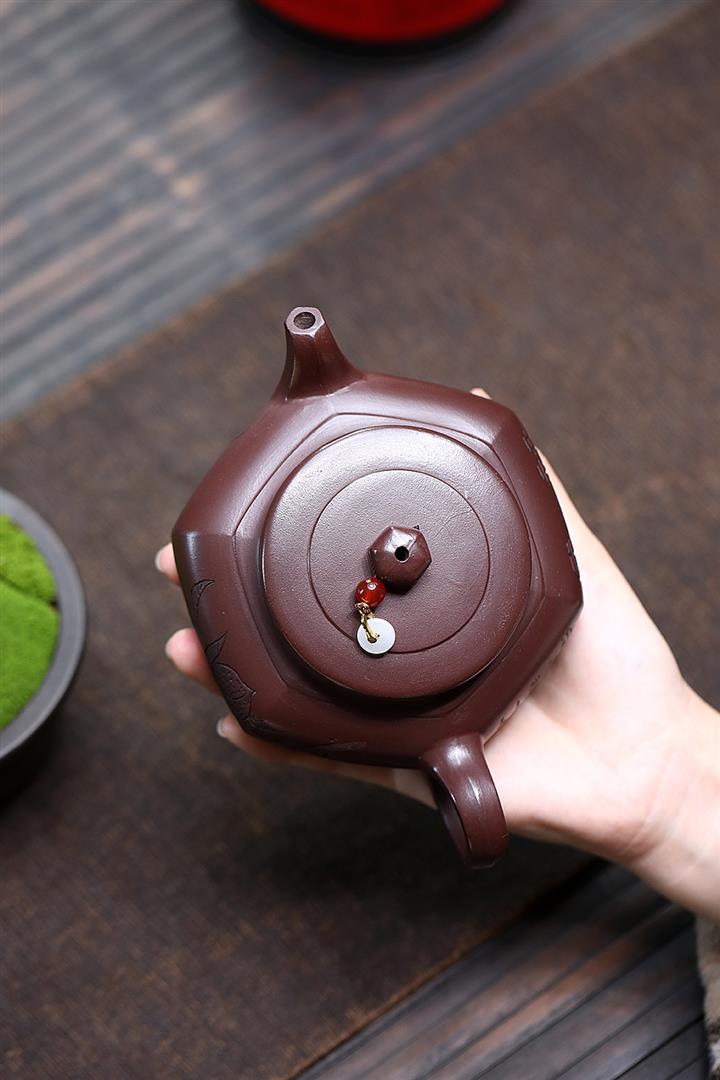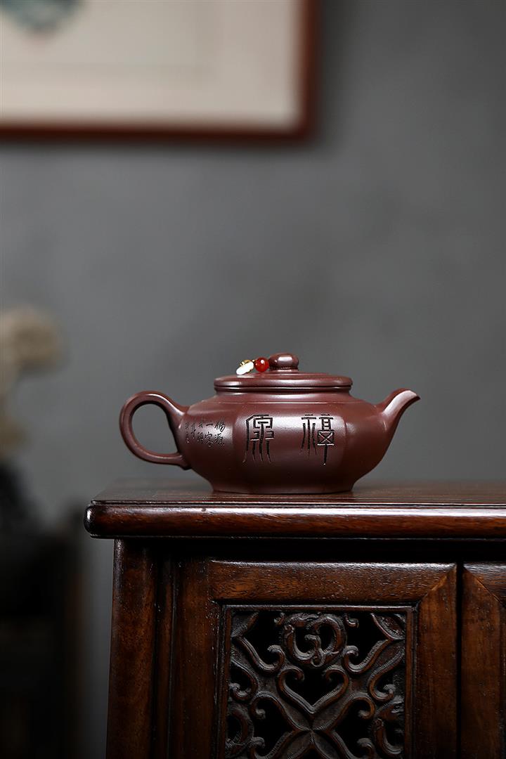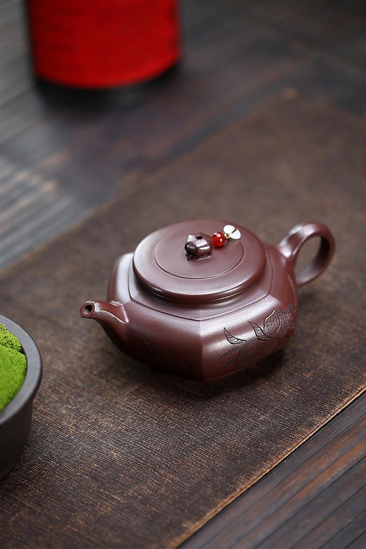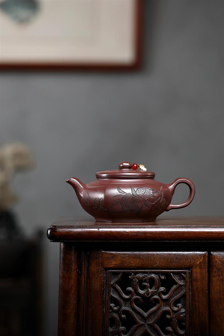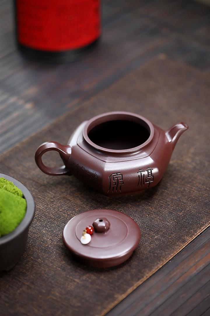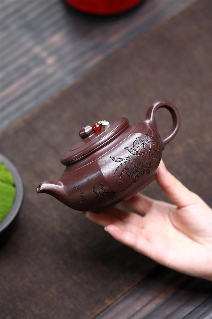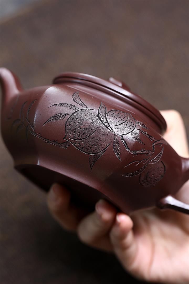 290cc原礦紫泥六方壽桃福源茶壺茶壺POT9038