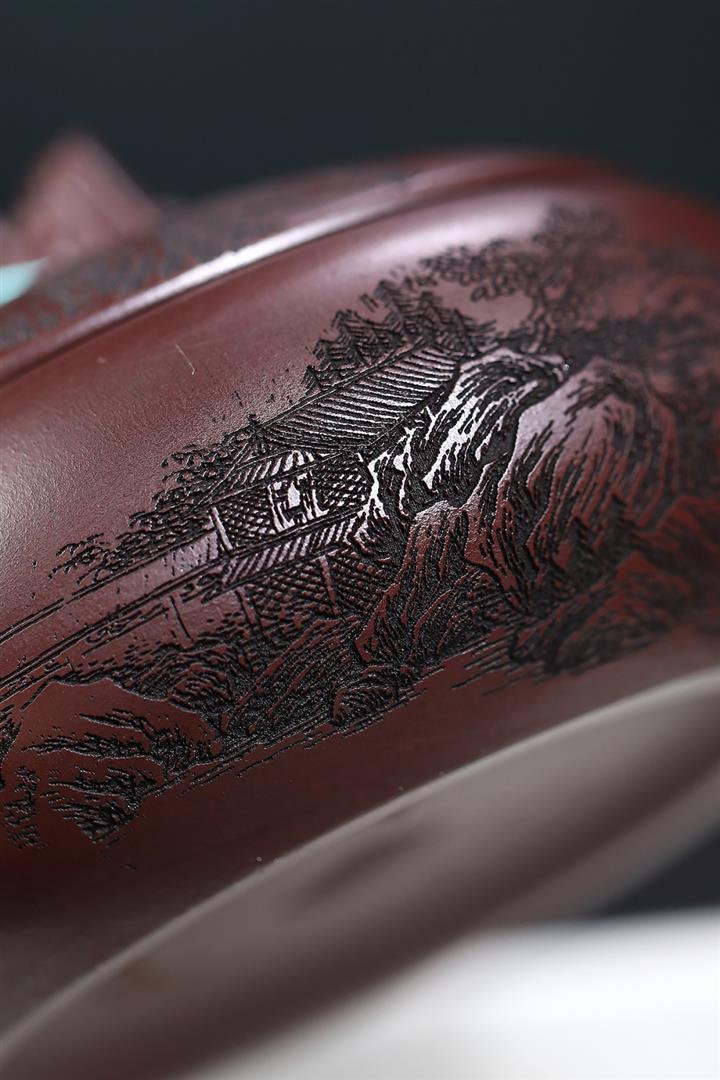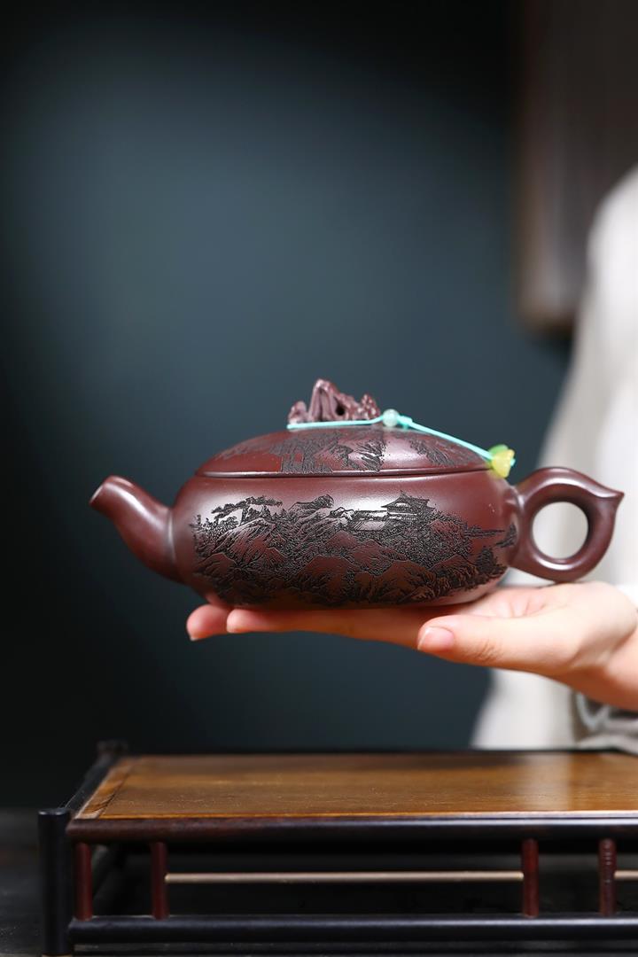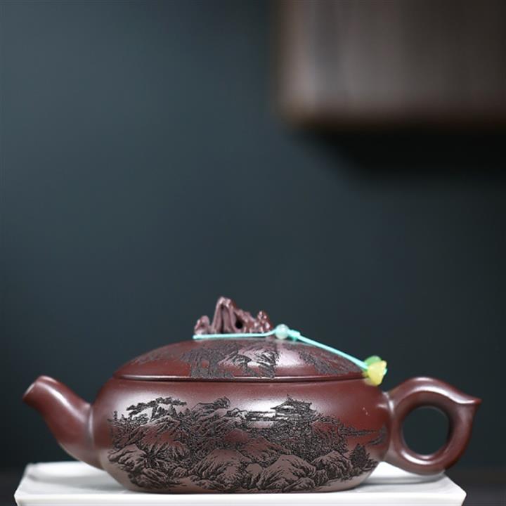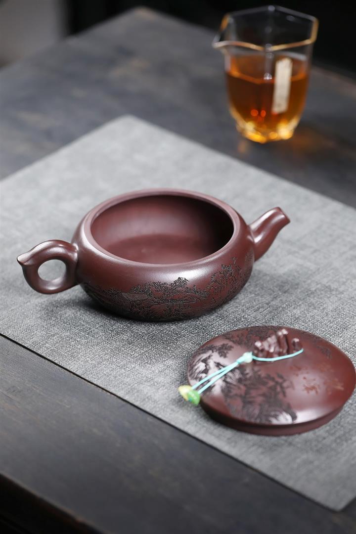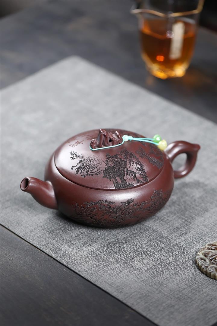 480cc原礦古銅烏泥滿刻見山漢瓦茶壺POT9051