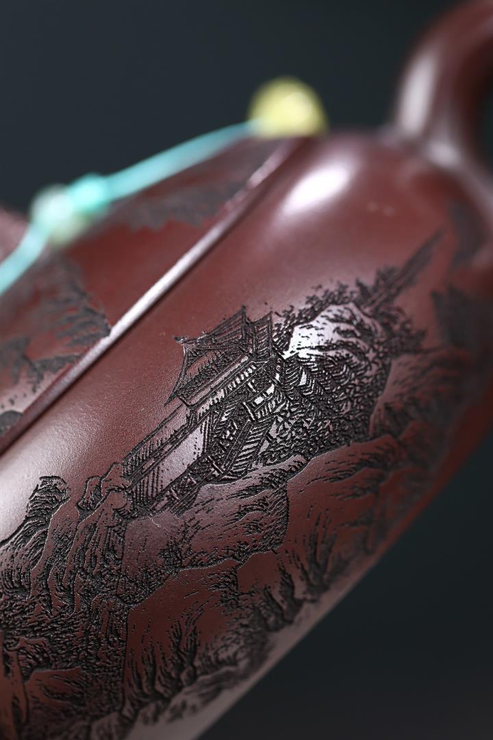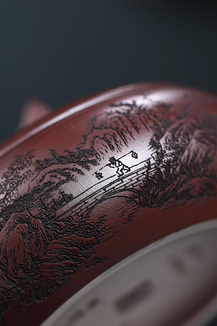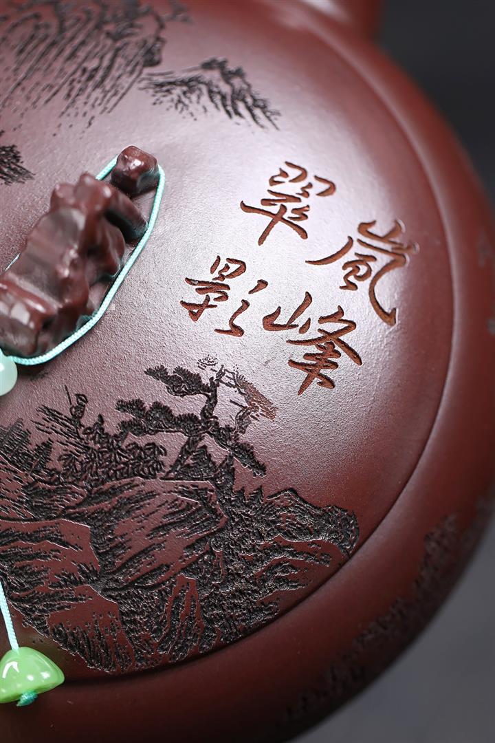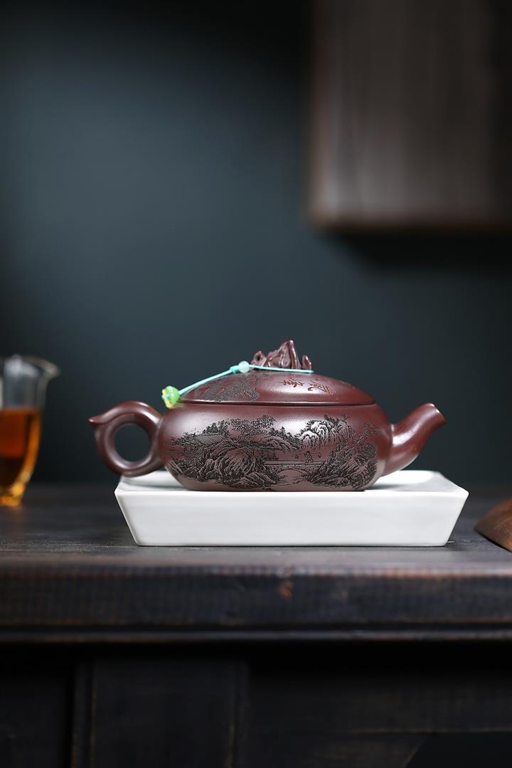 480cc原礦古銅烏泥滿刻見山漢瓦茶壺POT9051