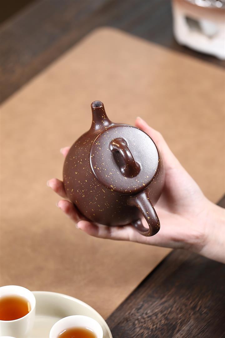 【作品介紹】此款壺形線條流暢,壺把,壺嘴,壺身壹氣呵成栩栩如生,是收藏把玩的好壺,泥料色澤古樸典雅,日久使用,漸露鋒芒,養成變化快,溫潤莊重,用其泡茶,使用的年代久,壺身就溫潤,泡出來的茶湯也就醇郁芳馨。