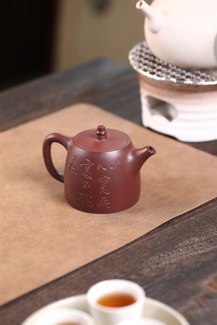 【泥料特點】砂土氣重,似淳實農民,日久使用,漸露鋒芒,養成變化,溫潤莊重。紫砂是壹種雙重氣孔結構的多孔性材質,氣孔微細,密度高。用紫砂壺沏茶,不失原味,且香不渙散,得茶之真香真味。紫砂使用越久,壺身色澤越發光亮照人,氣韻溫雅。紫砂壺長久使用器身會因撫摸擦拭,變得越發溫潤光澤。