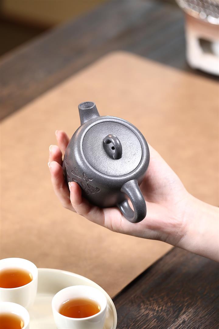 【作品介紹】此款壺形線條流暢,壺把,壺嘴,壺身壹氣呵成栩栩如生,是收藏把玩的好壺,泥料色澤古樸典雅,日久使用,漸露鋒芒,養成變化快,溫潤莊重,用其泡茶,使用的年代久,壺身就溫潤,泡出來的茶湯也就醇郁芳馨。