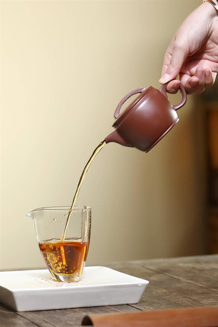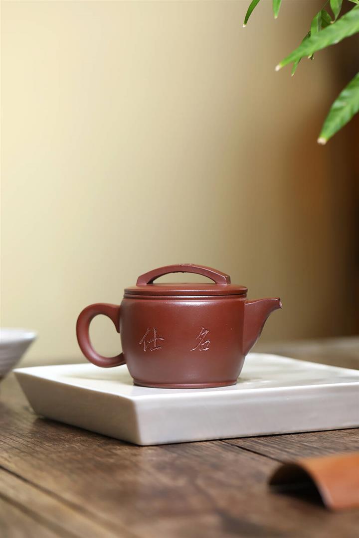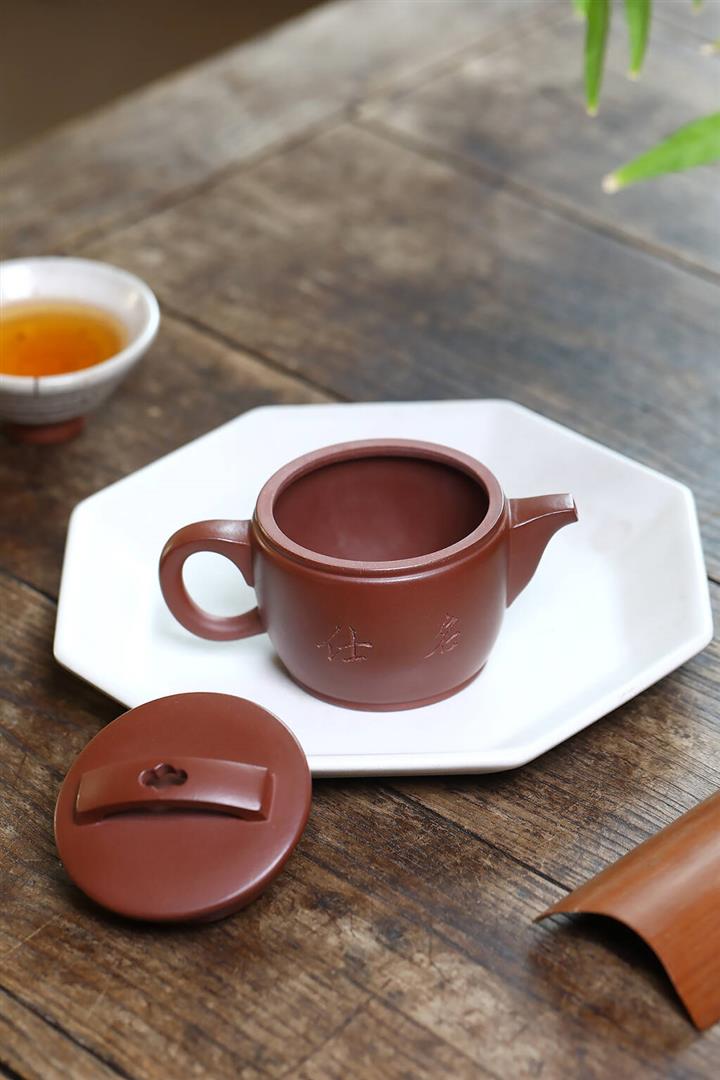 【泥料特點】砂土氣重,似淳實農民,日久使用,漸露鋒芒,養成變化,溫潤莊重。紫砂是壹種雙重氣孔結構的多孔性材質,氣孔微細,密度高。用紫砂壺沏茶,不失原味,且香不渙散,得茶之真香真味。紫砂使用越久,壺身色澤越發光亮照人,氣韻溫雅。紫砂壺長久使用器身會因撫摸擦拭,變得越發溫潤光澤。