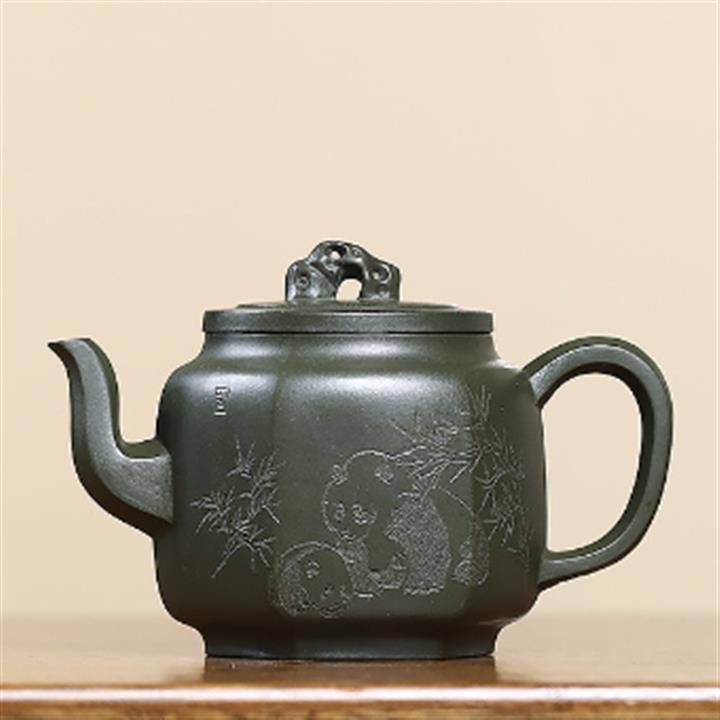 300cc原礦翡翠綠泥太湖石方圓熊貓茶壺POT9072