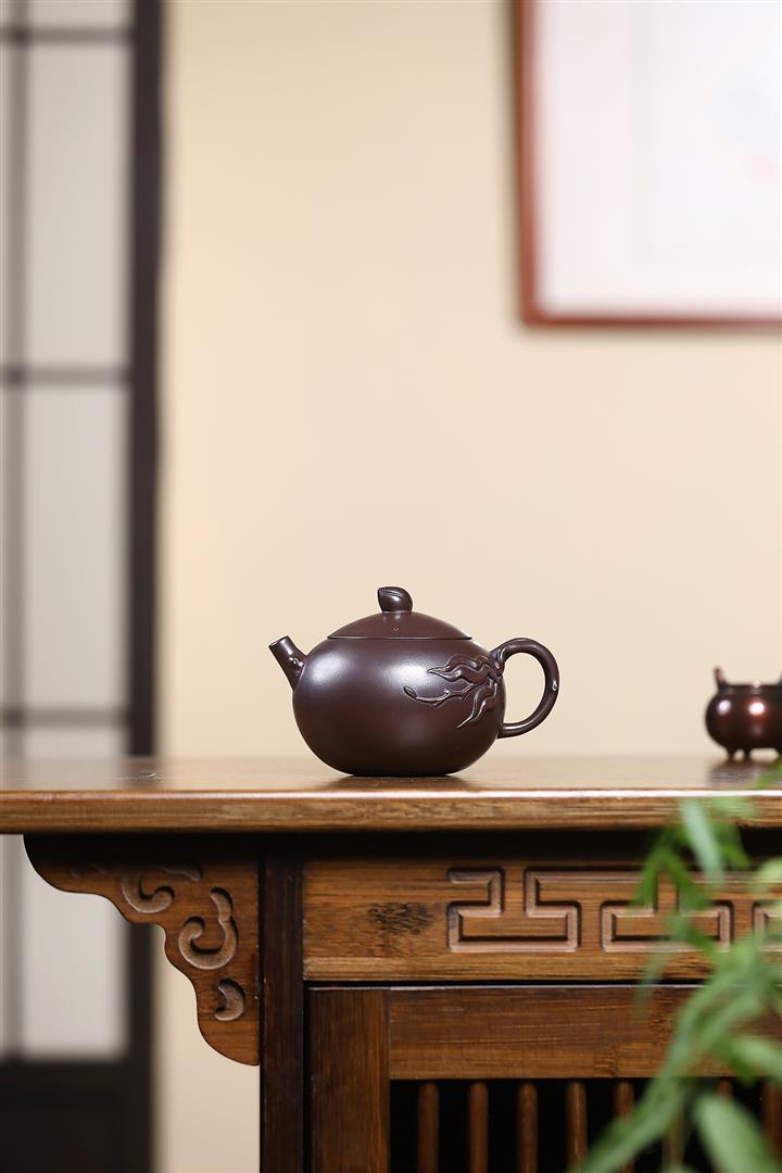 【作品介紹】此款壺形線條流暢,壺把,壺嘴,壺身壹氣呵成栩栩如生,是收藏把玩的好壺,泥料色澤古樸典雅,日久使用,漸露鋒芒,養成變化快,溫潤莊重,用其泡茶,使用的年代久,壺身就溫潤,泡出來的茶湯也就醇郁芳馨。
