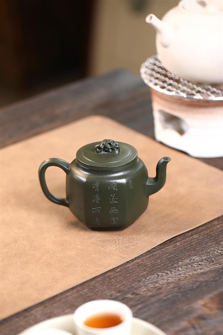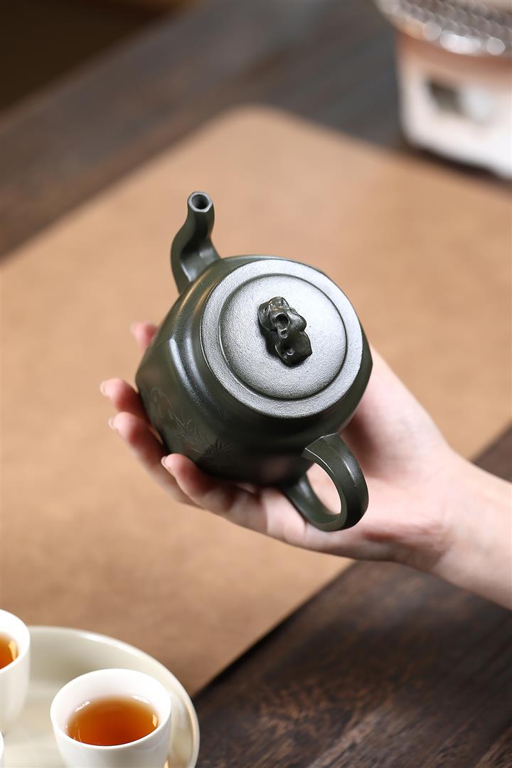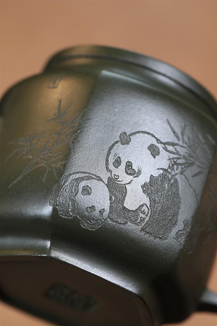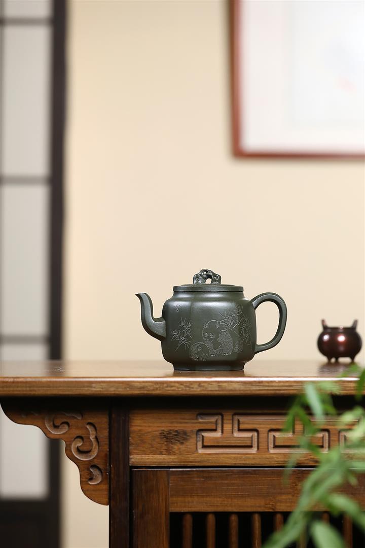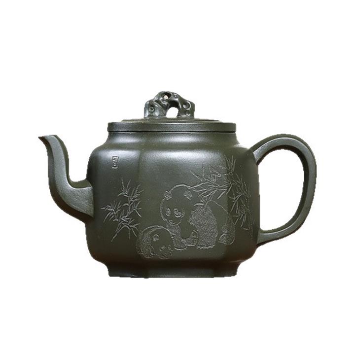 300cc原礦翡翠綠泥太湖石方圓熊貓茶壺POT9072