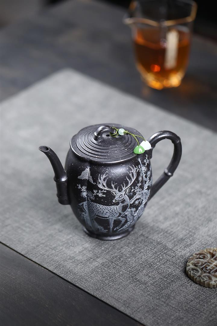 330cc原礦玄鐵星砂松鹿承禧茶壺POT9079