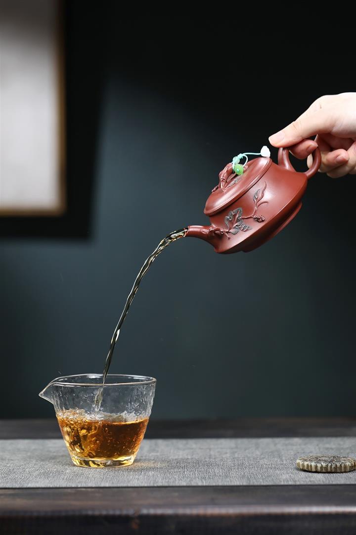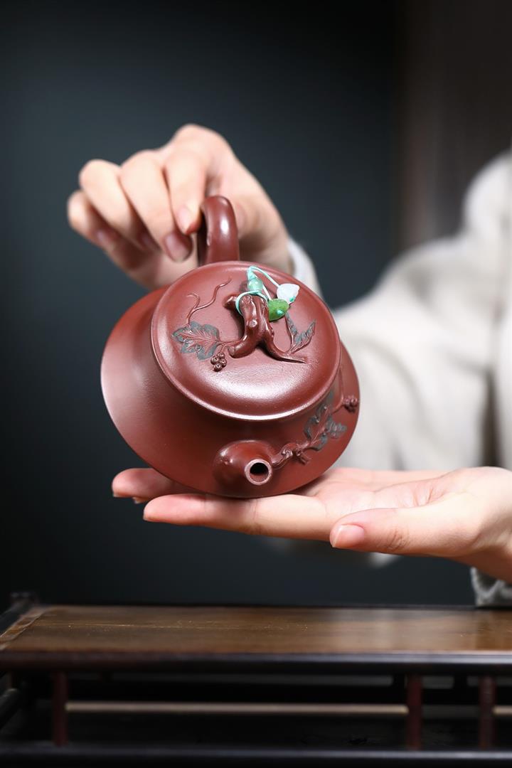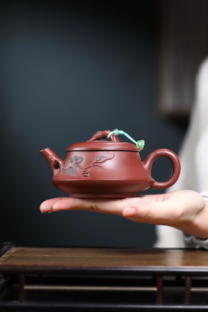 230cc原礦紅皮龍松影漢瓦茶壺POT9080