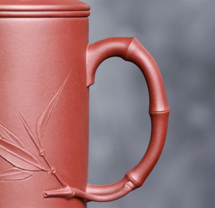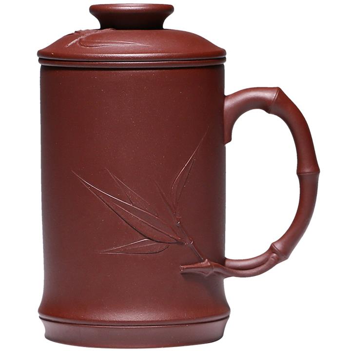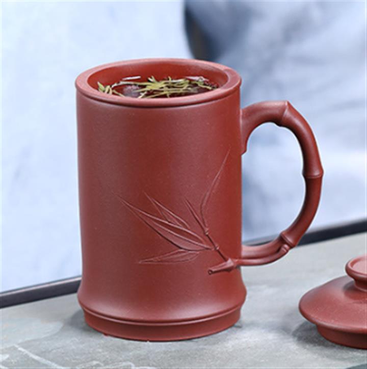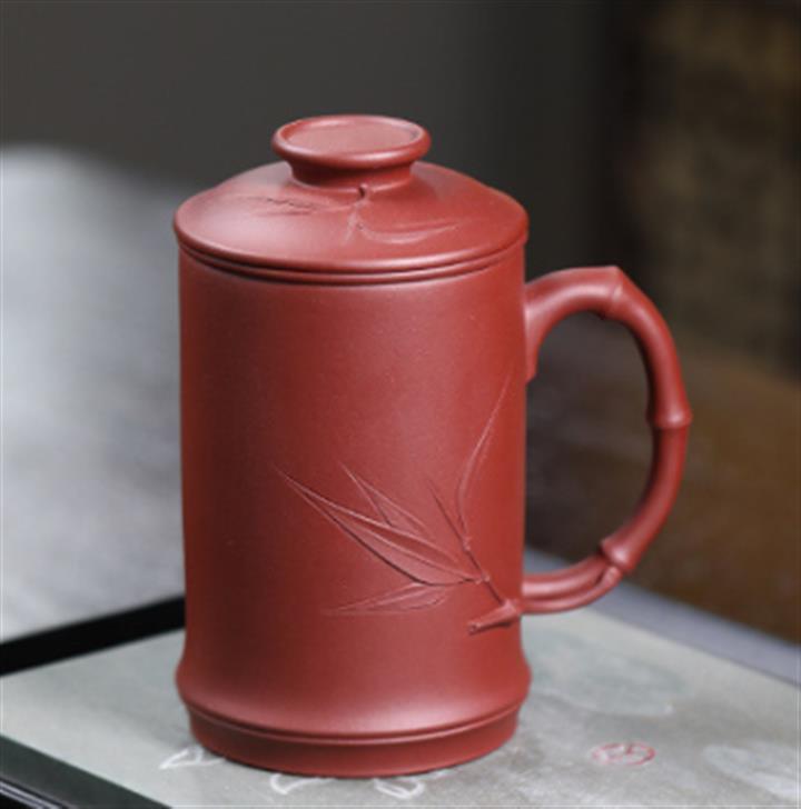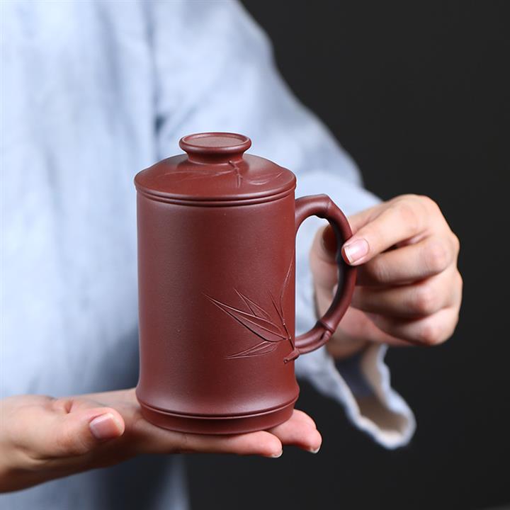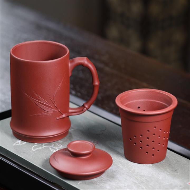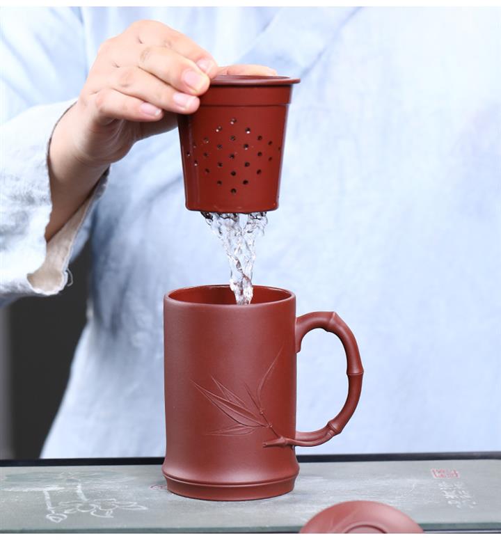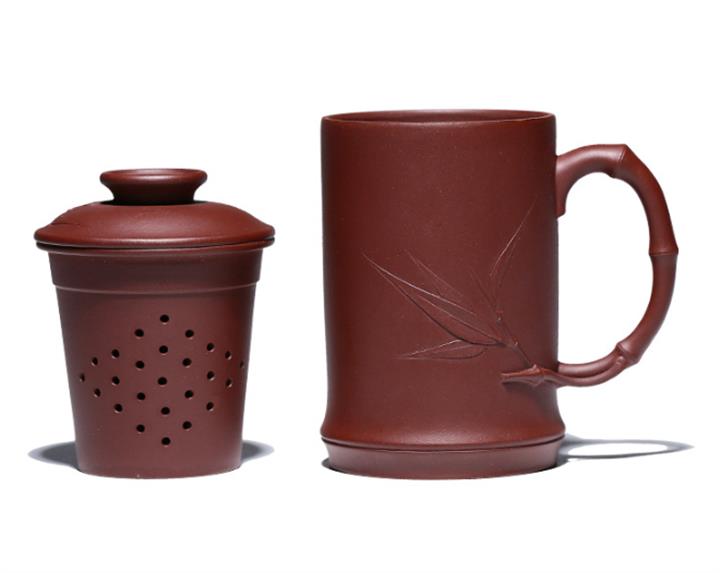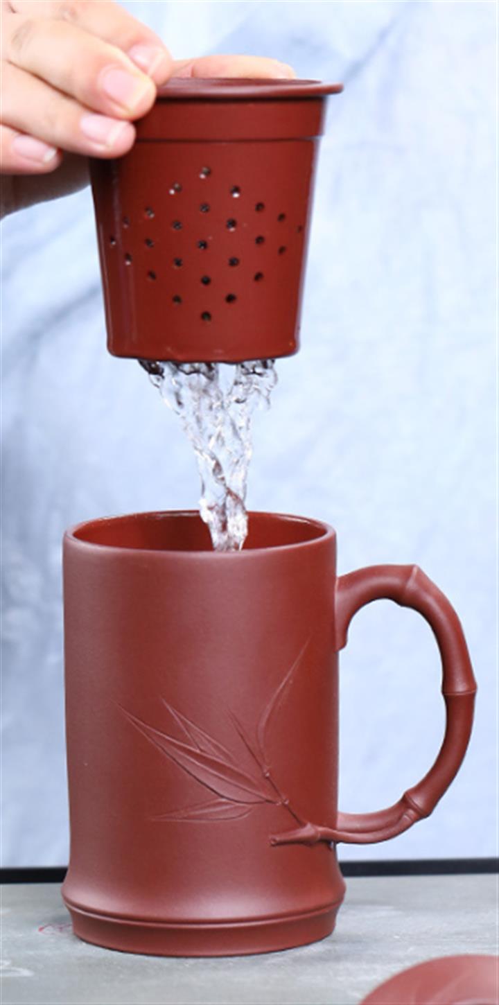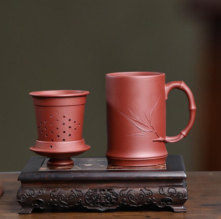 320cc原礦清水泥茶水分離過濾帶蓋高竹節茶杯POT9082