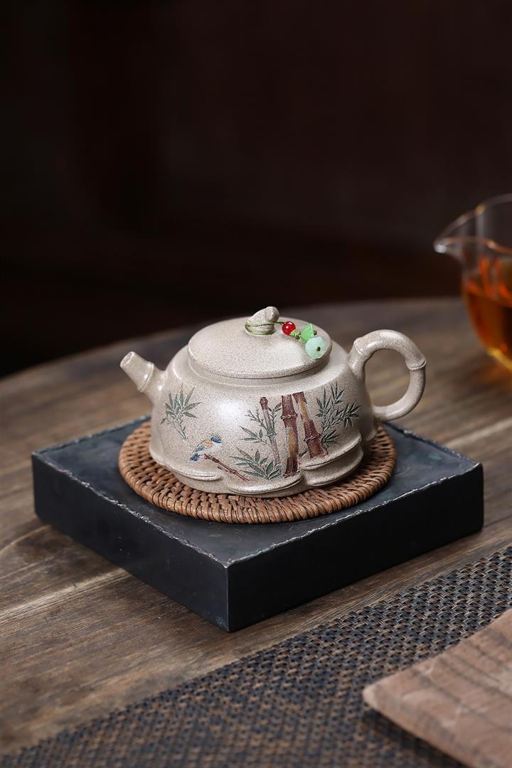 260cc原礦白段泥彩刻清風竹影茶壺POT9087