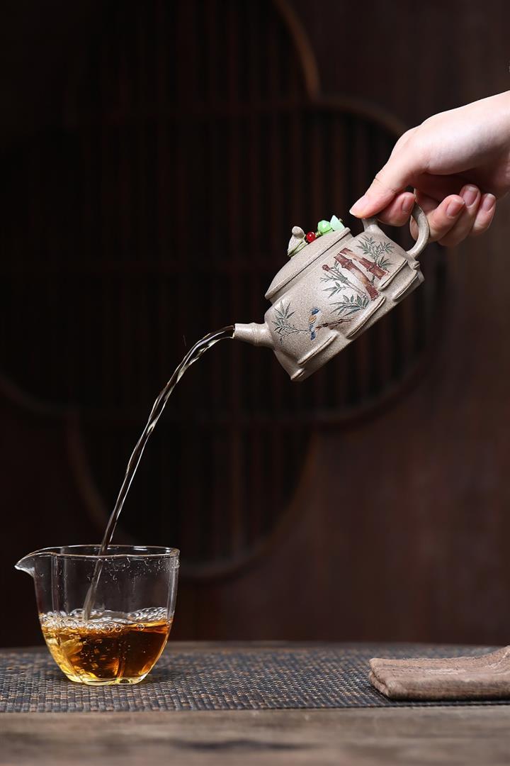 330cc龍骨金砂高溫柴燒竹葉報春茶壺POT9092