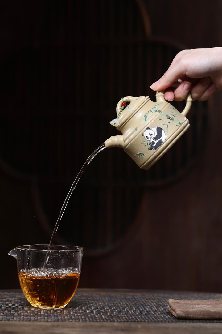 【泥料特點】砂土氣重,似淳實農民,日久使用,漸露鋒芒,養成變化,溫潤莊重。紫砂是壹種雙重氣孔結構的多孔性材質,氣孔微細,密度高。用紫砂壺沏茶,不失原味,且香不渙散,得茶之真香真味。紫砂使用越久,壺身色澤越發光亮照人,氣韻溫雅。紫砂壺長久使用器身會因撫摸擦拭,變得越發溫潤光澤。