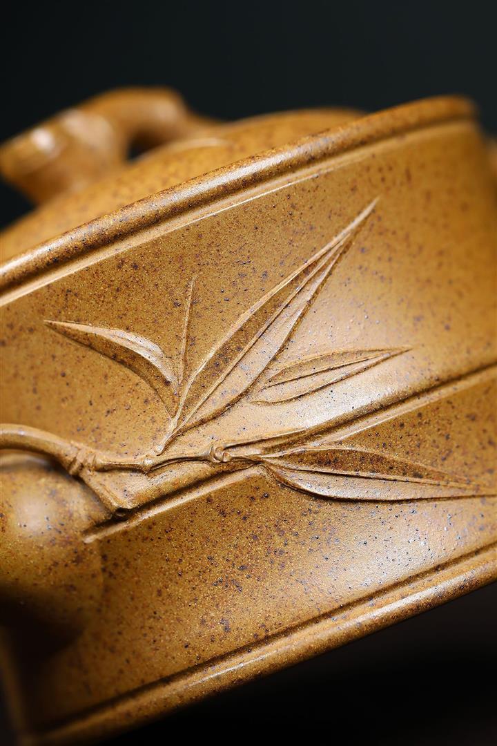240cc原礦高溫柴燒龍骨金砂四方刻竹茶壺POT9103